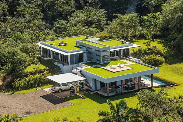 16. 这个相互交叉的屋顶结构,看起来很不同,整个房子从地面开始一个美丽的绿色环境。