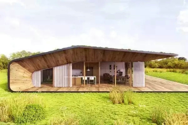 3. 木屋别墅,屋顶种植了各式各样的花朵植物,建筑本身在自然与人造物间保持和谐的平衡。