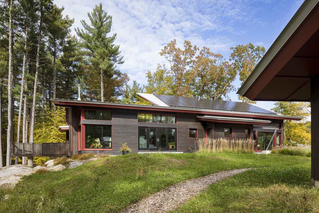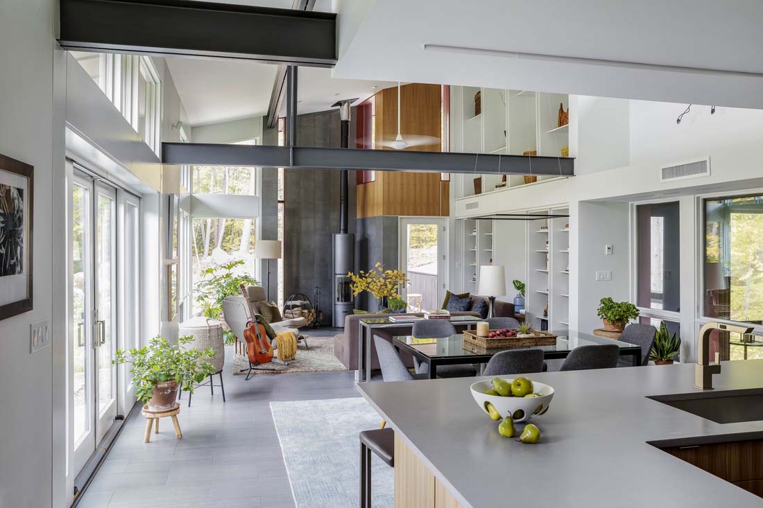 位于马萨诸塞州哈佛市的Jenson-DeLeeuw房屋由设计师精心打造,占地2200平方英尺,可产生足够的可再生能源以满足家庭的能源需求。这是通过具有太阳能电池的可再生能源系统和集成无源设计原理来实现的。这座房子坐落在乡村景观中,展示了实现能源独立性的策略,同时提供了宽敞,光线充足的现代生活空间。