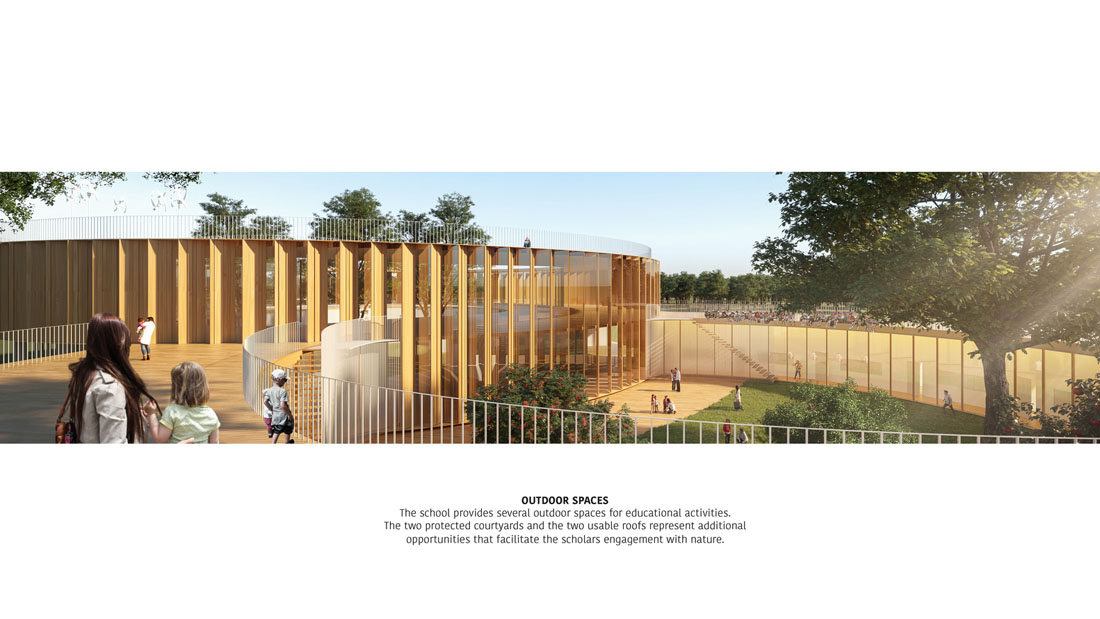 能源自给自足,未来的学校将包括几个可持续发展的设备,例如雨水收集,自然交叉通风以及光伏面板,风能设备,这些设备均位于较高的屋顶上。实际上,可持续发展已成为儿童教育经验的一部分。它必须具有高度的灵活性,并且能够适应不同的功能和程序,并为整个社区提供多种好处,从而成为重新确定城市地区资格的动力。