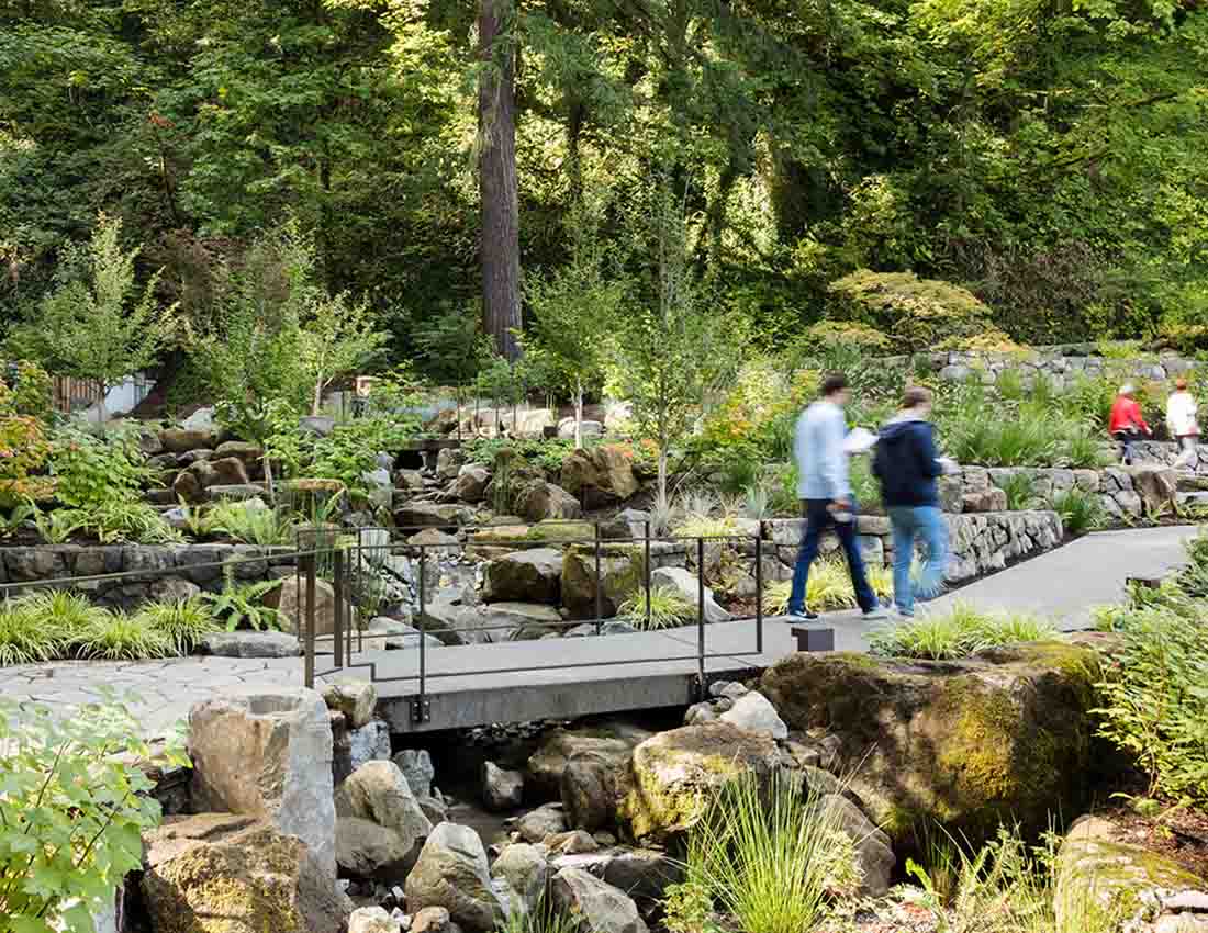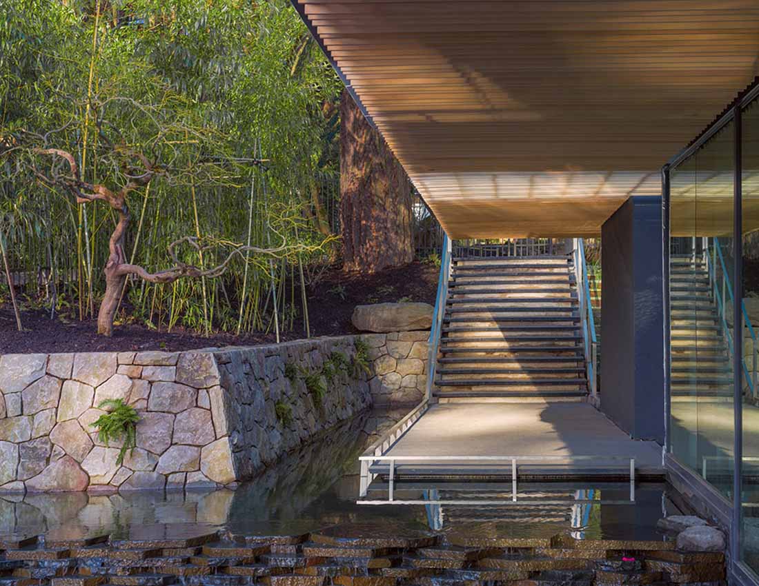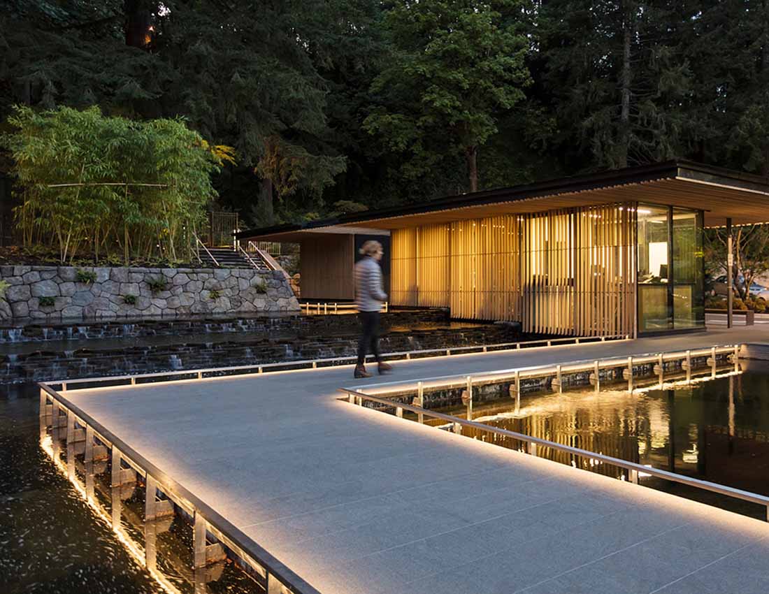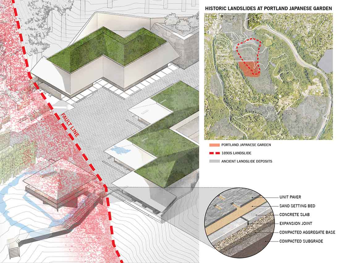 改造的首要内容是建立明确的到达次序。在原来,游客需要穿越停车场、马路和服务庭院进入场地。在重新设计之后,客人们从旅程的一开始便能够收获到丰富的体验,并随着空间的序列逐步深入场地。在山脚下,新建立的Tanabe欢迎中心(Tanabe Welcome Center)提供了更加正式和吸引人的入口。游客们可以经由人行道穿越森林峡谷和跌落式的雨水花园,最终到达顶部的文化村(Cultural Village)。