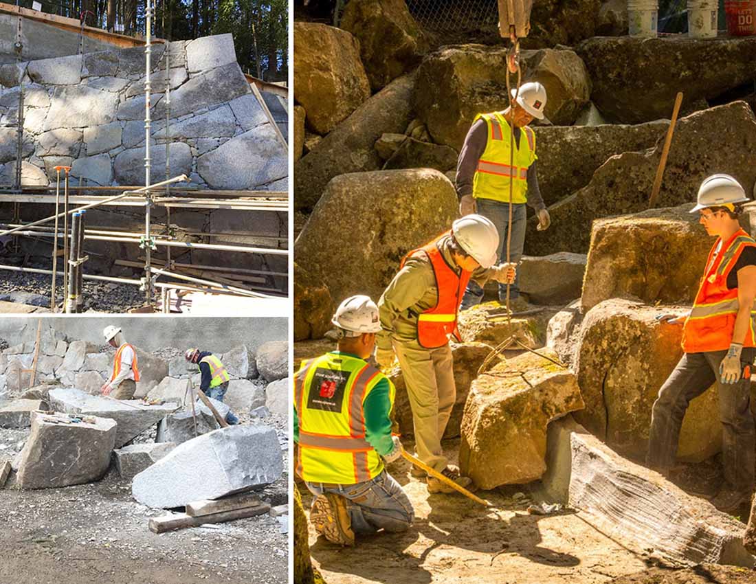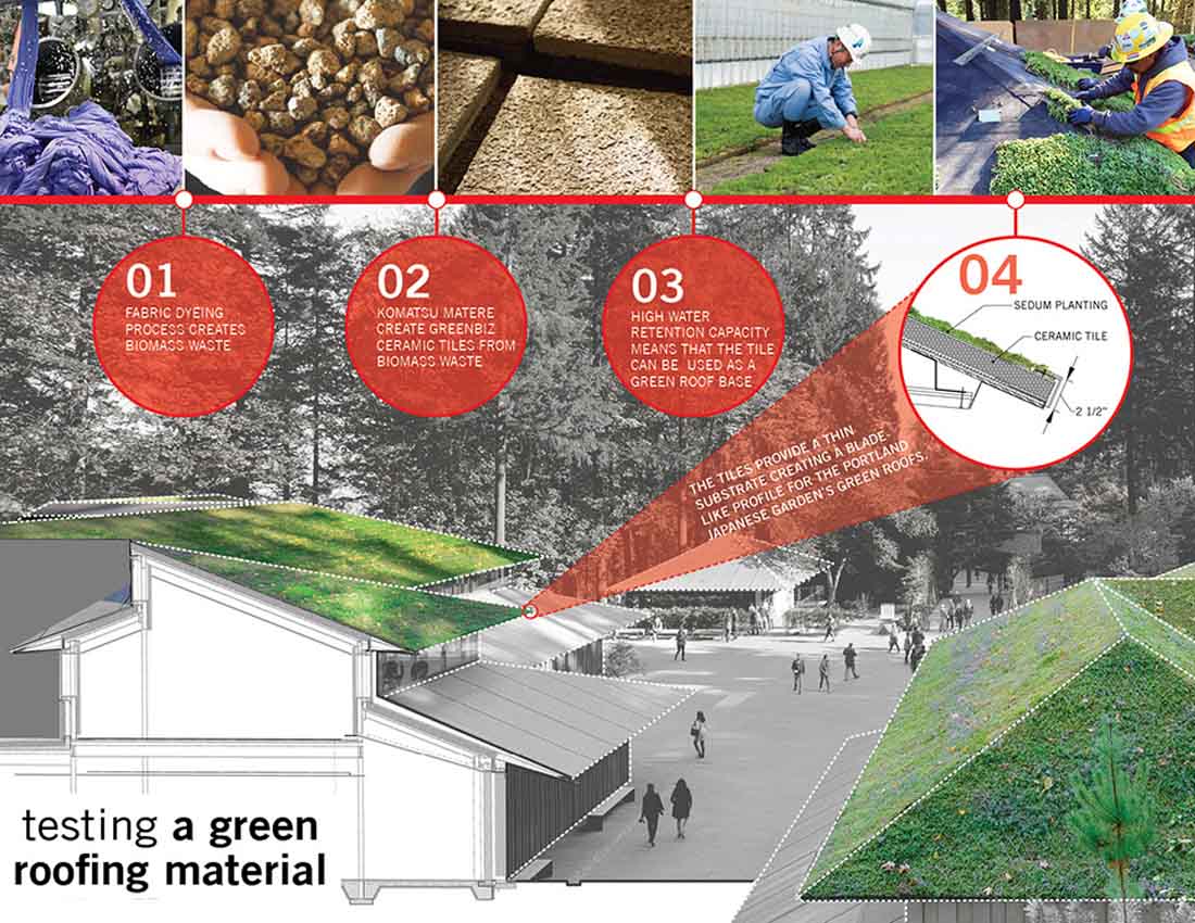 虽然空间的设计都具有明显的现代特征,设计师还是尽可能地结合了传统的施工和安装方法,以强调古代记忆与现代设计背景的持续关联。设计团队所面临的挑战是,如何将传统的方法恰当地转化为适合建造的前沿项目。为了维持庭园区域内既有的日本传统特征,“文化交汇口”选择了产自本地的材料和植物,其中石头等材料均是从当地资源中经由人工挑选。