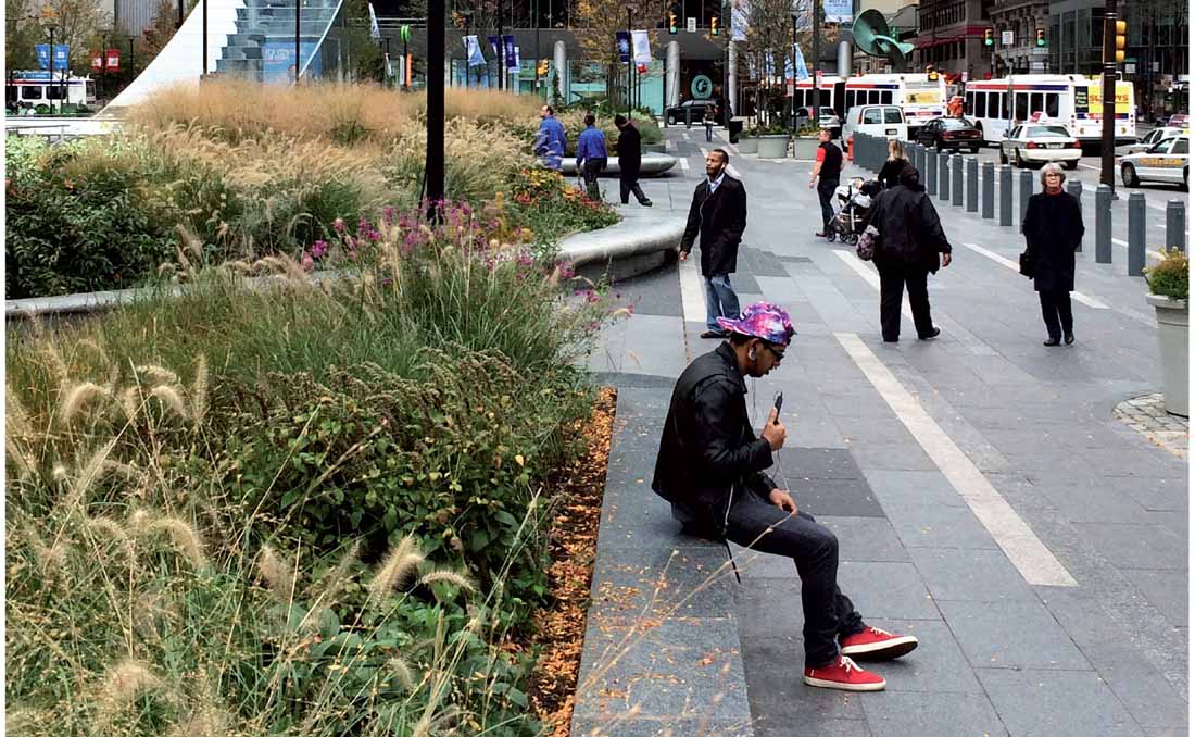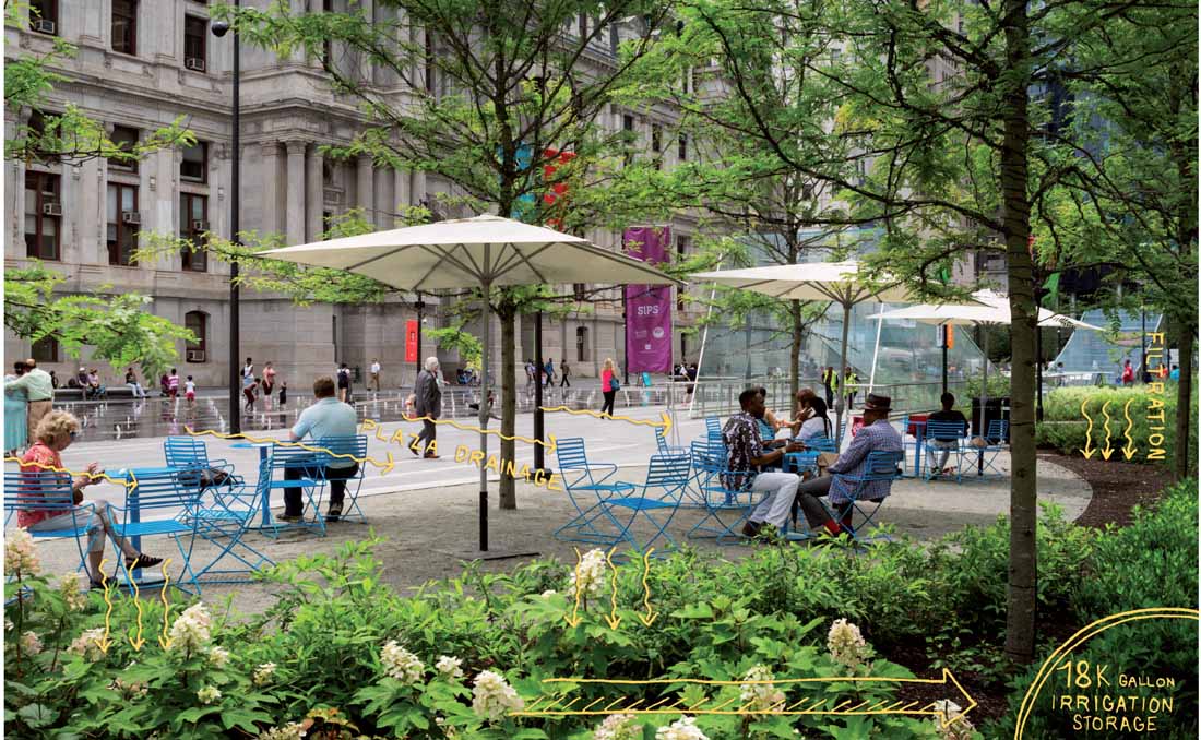 Dilworth公园的设计看上去十分简单,但实际上它充分地考虑到了人体的各种需求和尺度,在营造安全的环境以及灵活的空间同时,还使公园在人多和人少时都能够展现出特有的魅力。新的公园不仅要具备活力与灵活性,还要保证不与市政厅的庄严立面相冲突。另外,由于公园本身将成为覆盖下方交通系统的“屋顶”,技术工程便成为了项目中的另一个重中之重。在场地中的许多位置,喷泉、铺装和绿植元素需要被压缩在厚度仅3英尺(约0.91米)或更薄的结构板内。