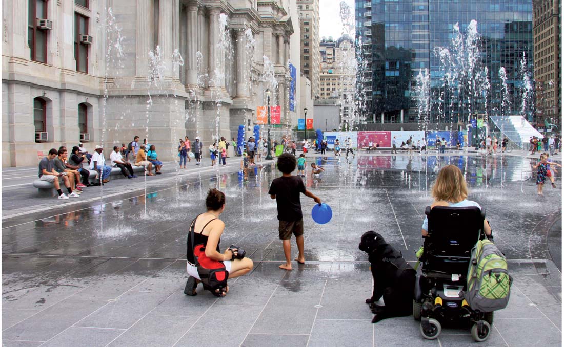 位于费城市政厅的Dilworth公园生动地体现了威廉·潘恩将费城打造为“绿色首府” 的愿景。如今的Dilworth公园已经成为费城户外生活的一个包容性的中心,但在几十年前,这里还是一个非常缺乏吸引力的场地:高低不一的平台、隐蔽的过道和被弃置的喷泉,周围栖生着阴郁而缺乏活力的树木,给人以封闭和混乱的感觉。