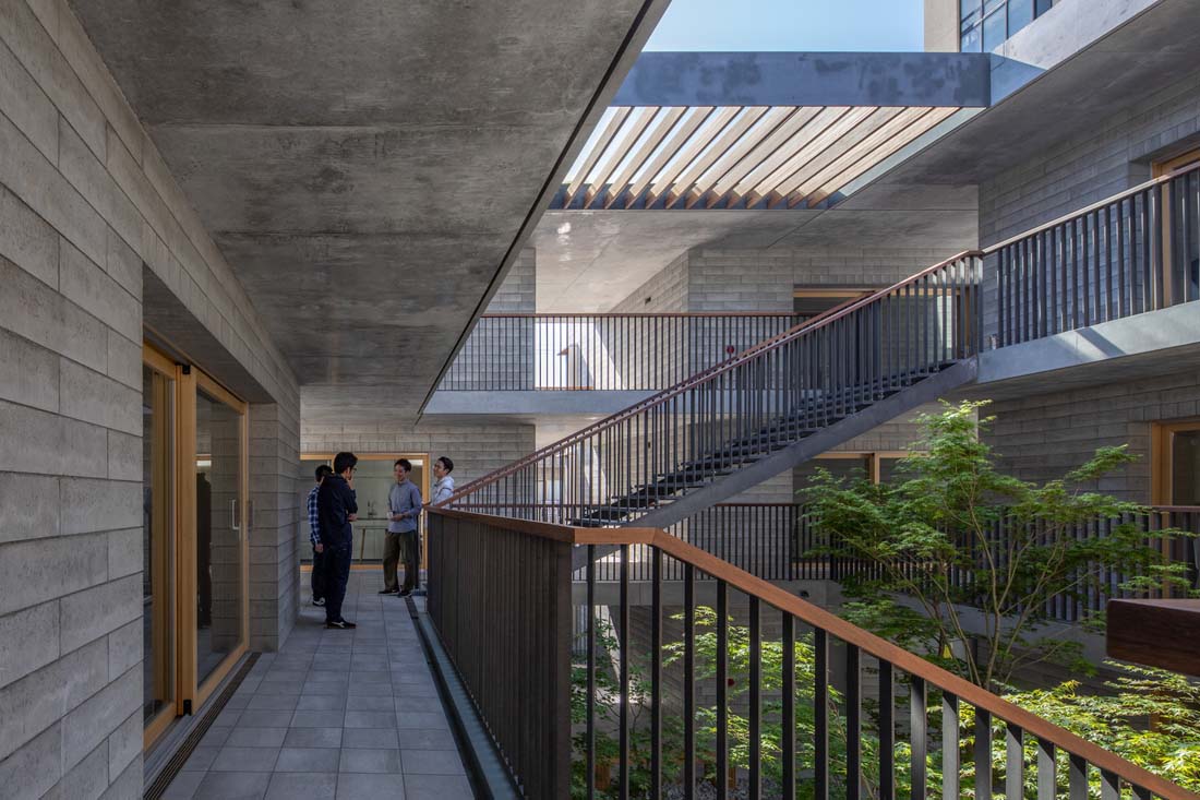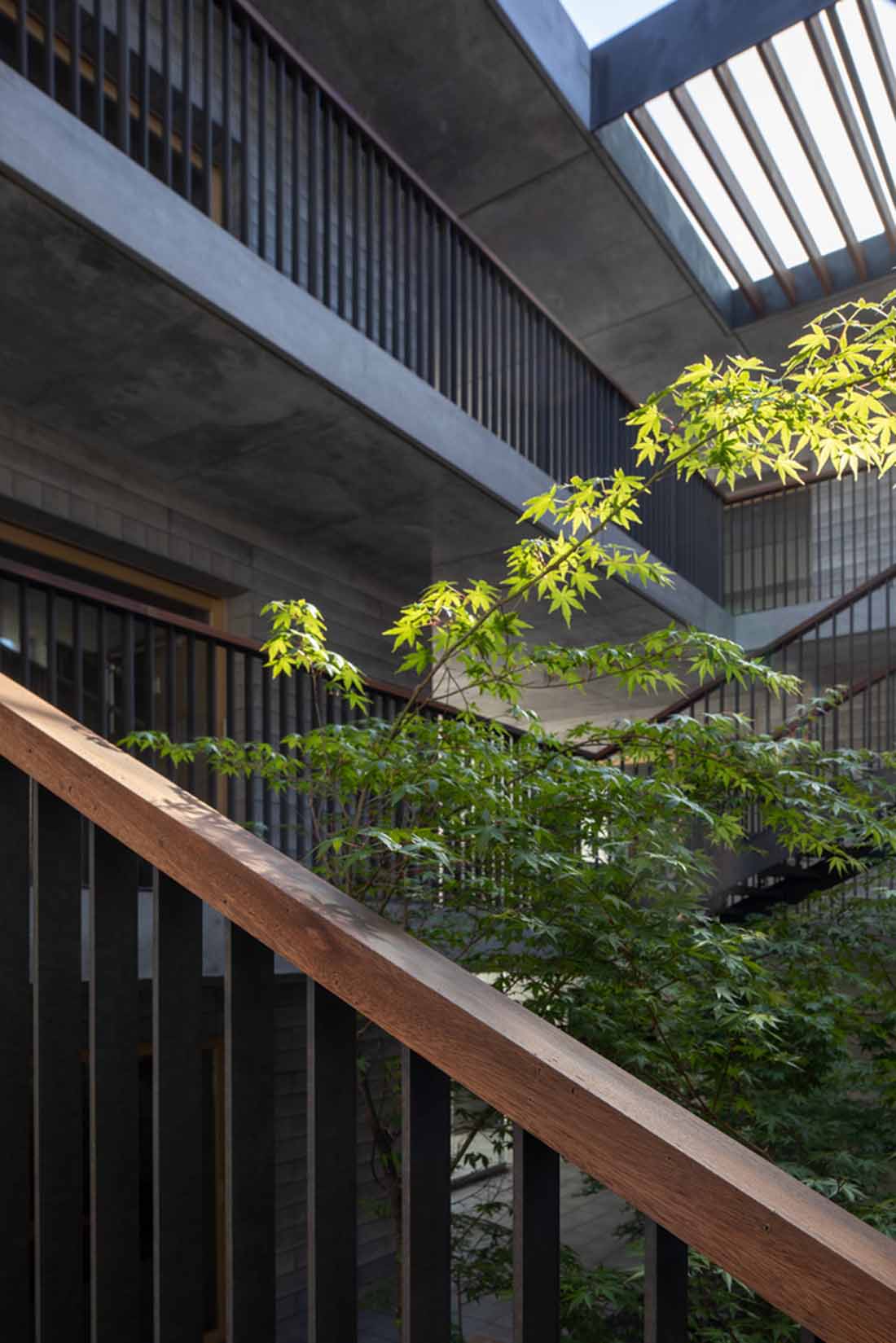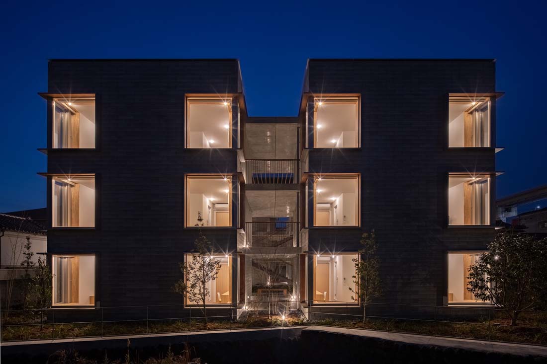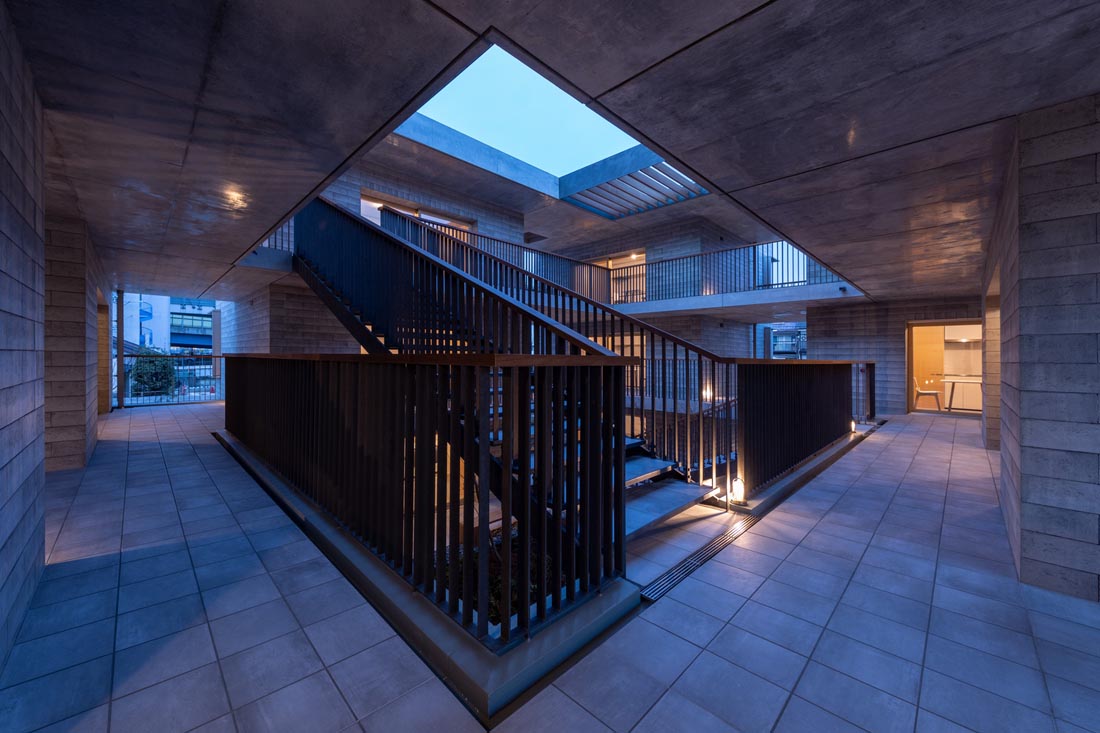 设计师在院子周围布置了建筑物,并在它们之间建立了一个称为“公共点”的开放空间。它将光和风传递到公共空间,并将成为居民第二居室的交流场所。还将单位划分为两个紧凑的私人房间和一个共用厨房,供他们烹饪和用餐。共用厨房可通过大型木质推拉门向公共空间敞开。