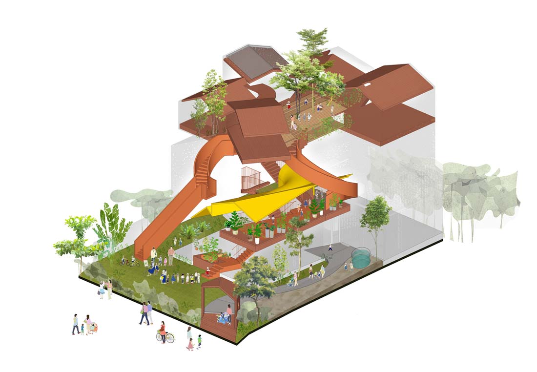 Chuon Chuon Kim 2幼儿园项目被引入胡志明市的2区,作为一种教育环境,吸引并激发儿童和成人之间有意义的交叉互动。学校内部安装的是一种开放空间,让充满好奇心的各个年龄段的人们都可以在轻松而宁静的氛围中冒险和探索空间。