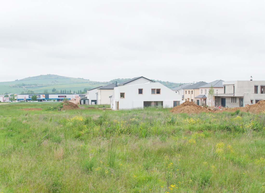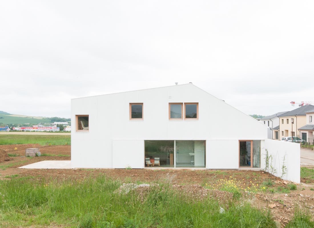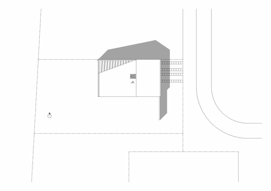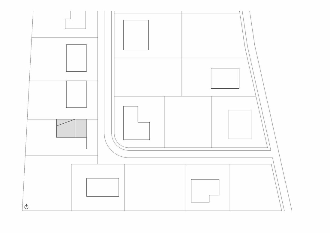 该乡间社区表现出平常的平庸性,土地购置抵消了大部分预算。东方的街道外墙在周围逐渐消失:看不见的灰泥墙和瓷砖,没有窗户。房子地块的深度尽可能扩大,以部署一个大的南立面。