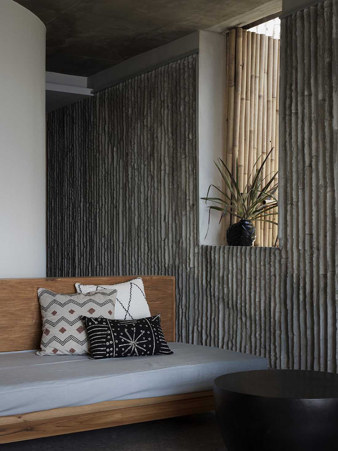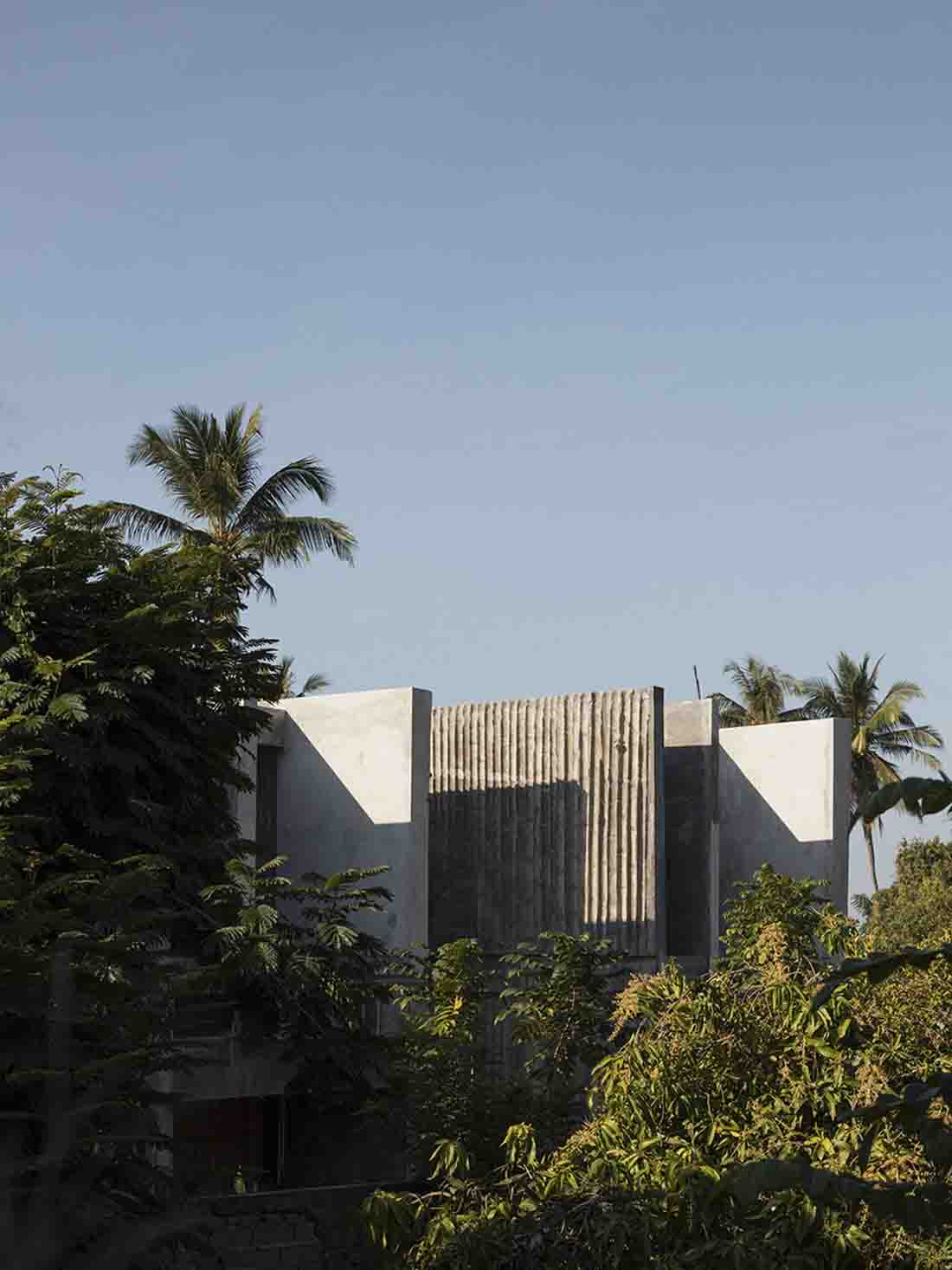 该项目的实质性目标是创造一座与当地环境、建造技术、资源和气候条件相适应的建筑。混凝土和竹子的使用便是体现之一。在热带气候下,维持墙面的清洁需要耗费大量成本,在该项目中,墙面材料会随着时间的推移产生光泽,从而进一步增强建筑和当地环境的特征。将竹子的质地和形态作为混凝土的负向表达,是本次设计的主题所在。