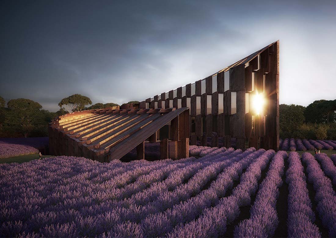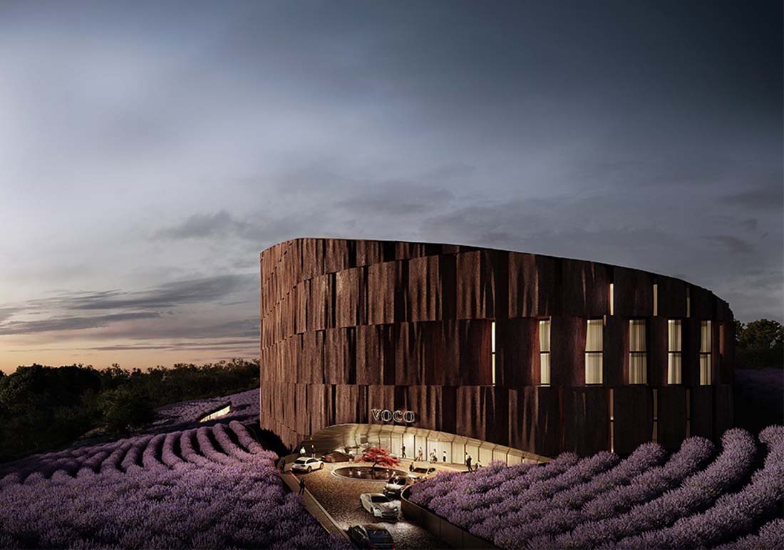 该精品度假酒店在精品度假胜地,该项目还将包括将薰衣草注入杜松子酒的设施。其马蹄形布局着眼于山谷的景色,并环绕着一个私人庭院。