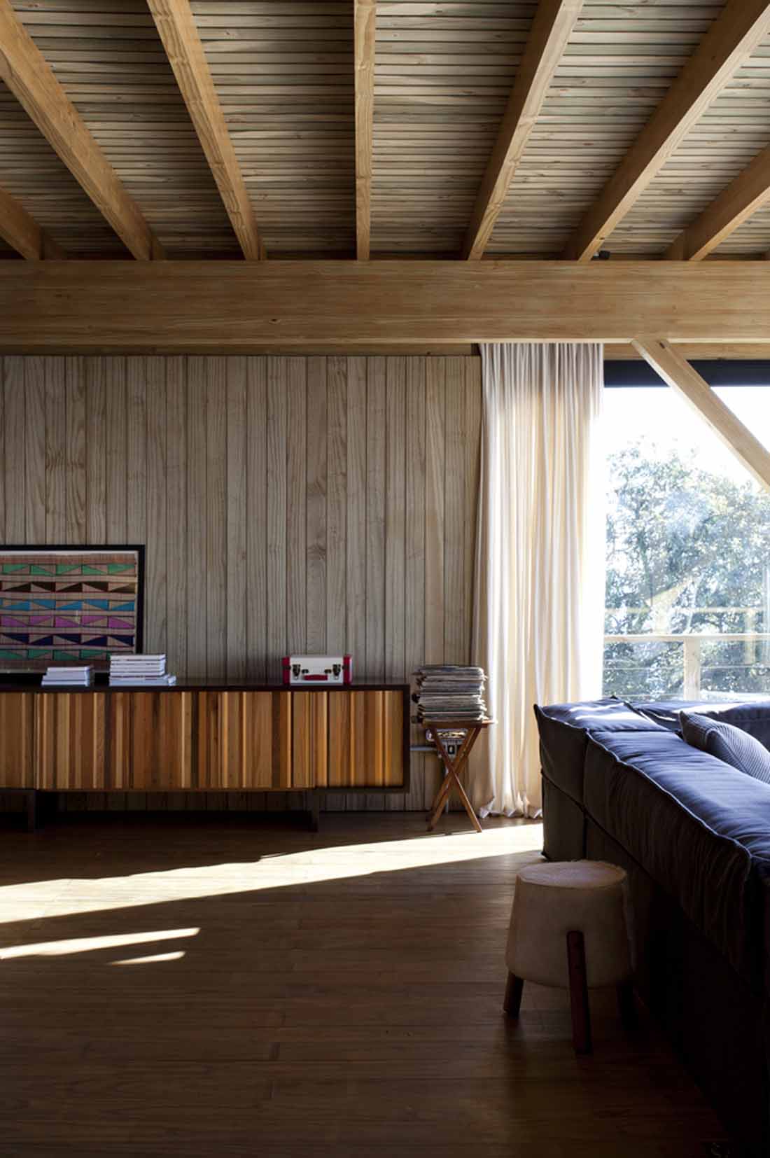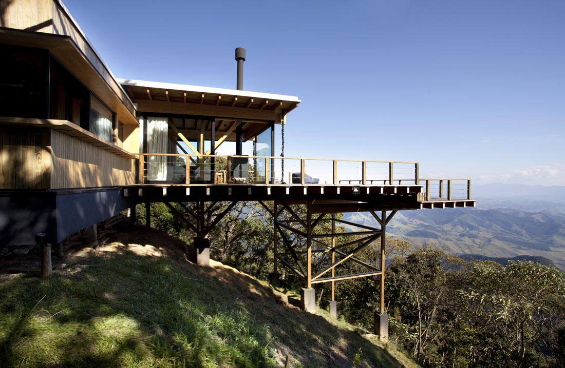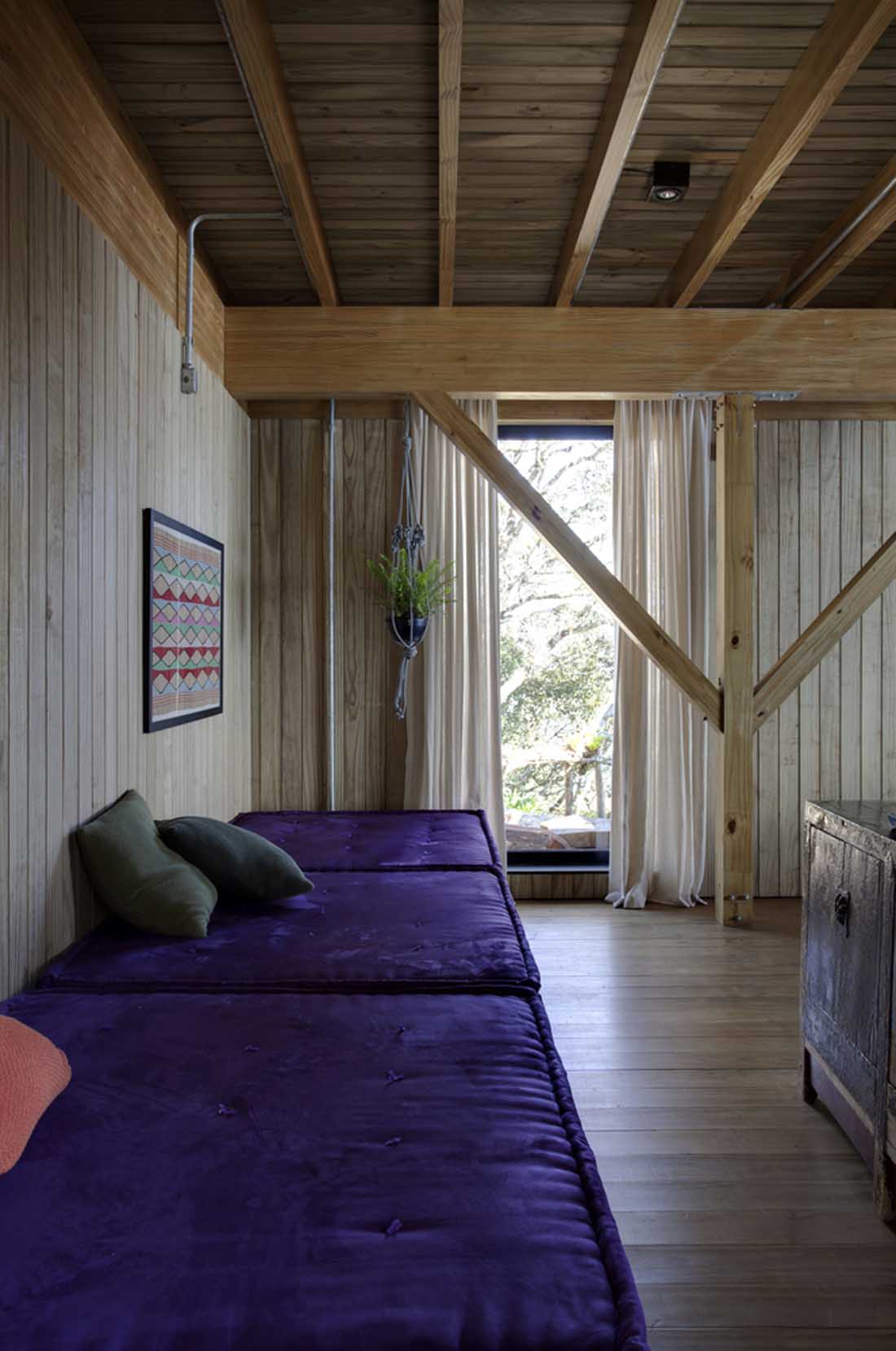 Bocaina住宅位于Serra da Bocaina的黄金地段,是一栋完全以木质结构体系建造的房屋:大块木材和木结构。除了用于支撑房屋的混凝土板和带有木柱的桩外,整个项目均采用松木建造。