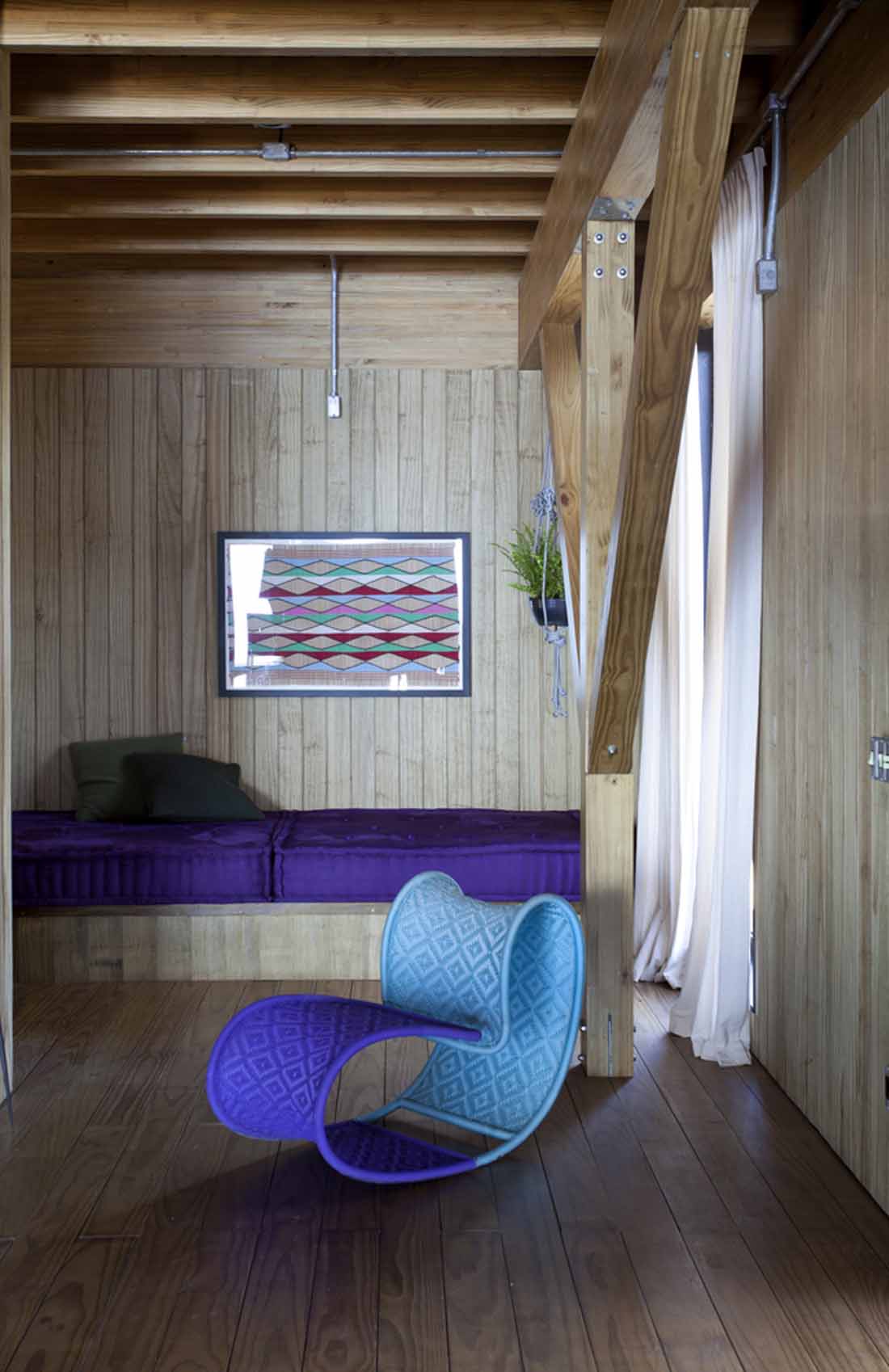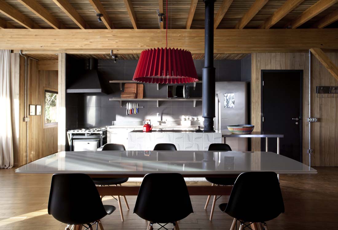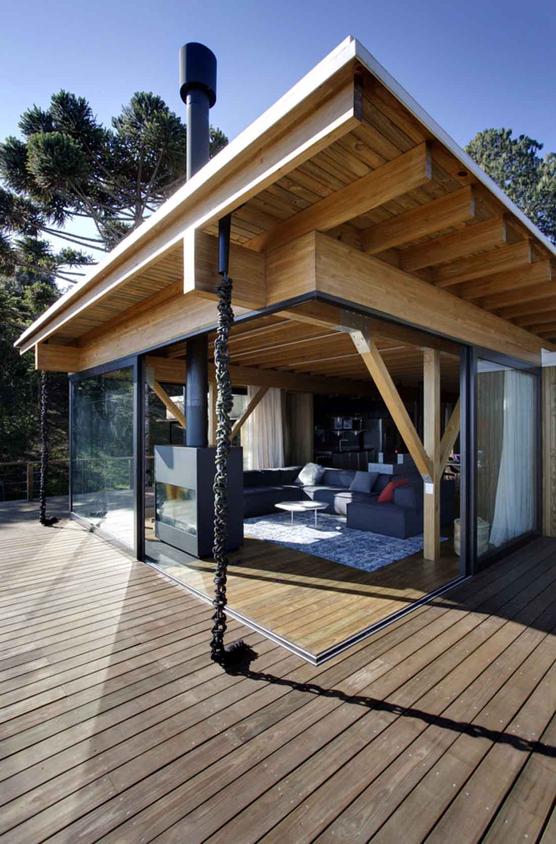 Bocaina住宅位于Serra da Bocaina的黄金地段,是一栋完全以木质结构体系建造的房屋:大块木材和木结构。除了用于支撑房屋的混凝土板和带有木柱的桩外,整个项目均采用松木建造。