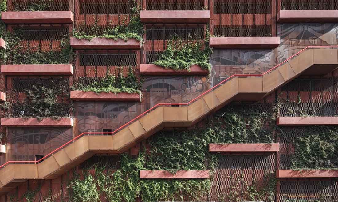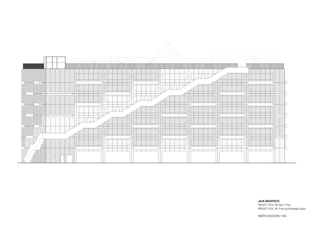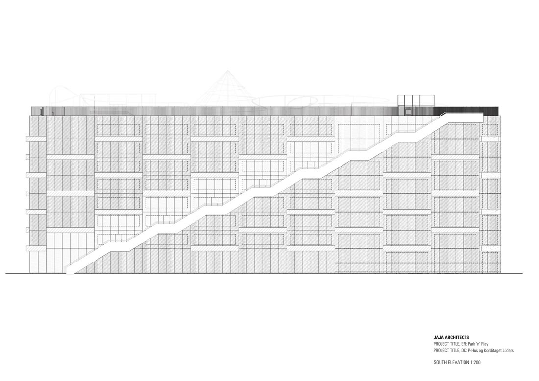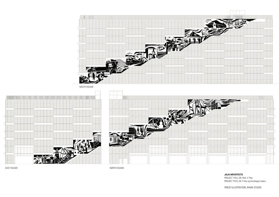 停车场应成为城市不可分割的一部分。设计师将传统的停车场结构创造一个吸引人的绿色外墙,并鼓励人们使用屋顶空间。