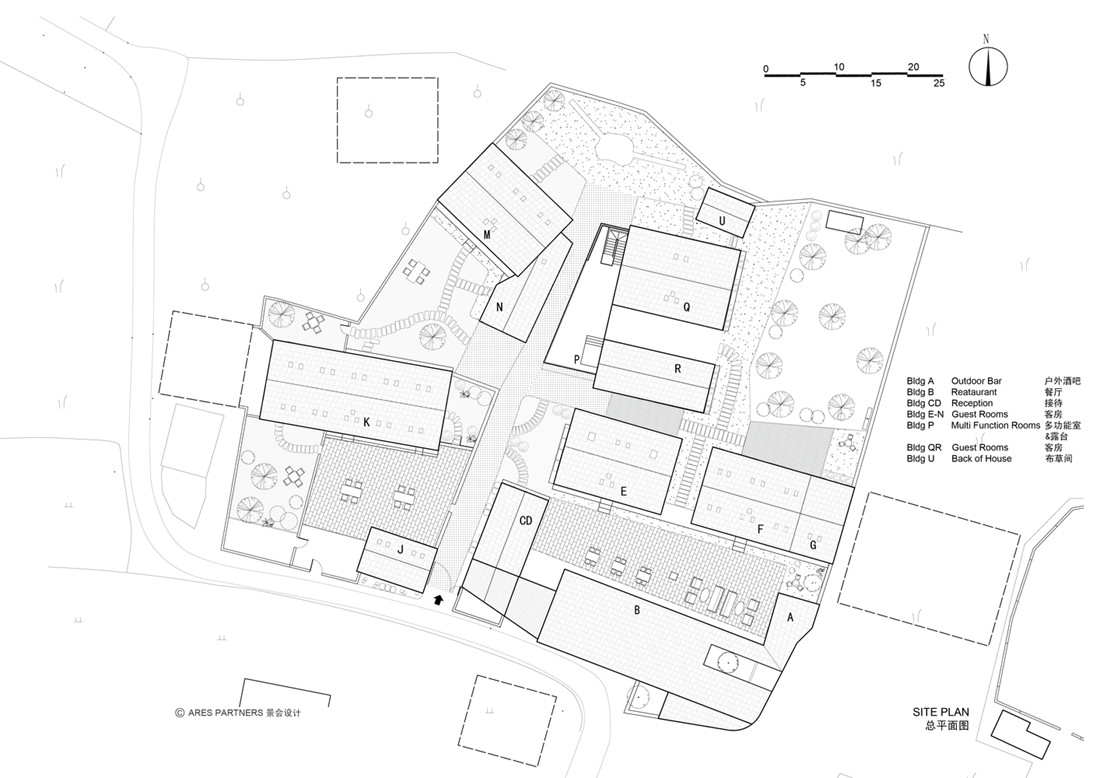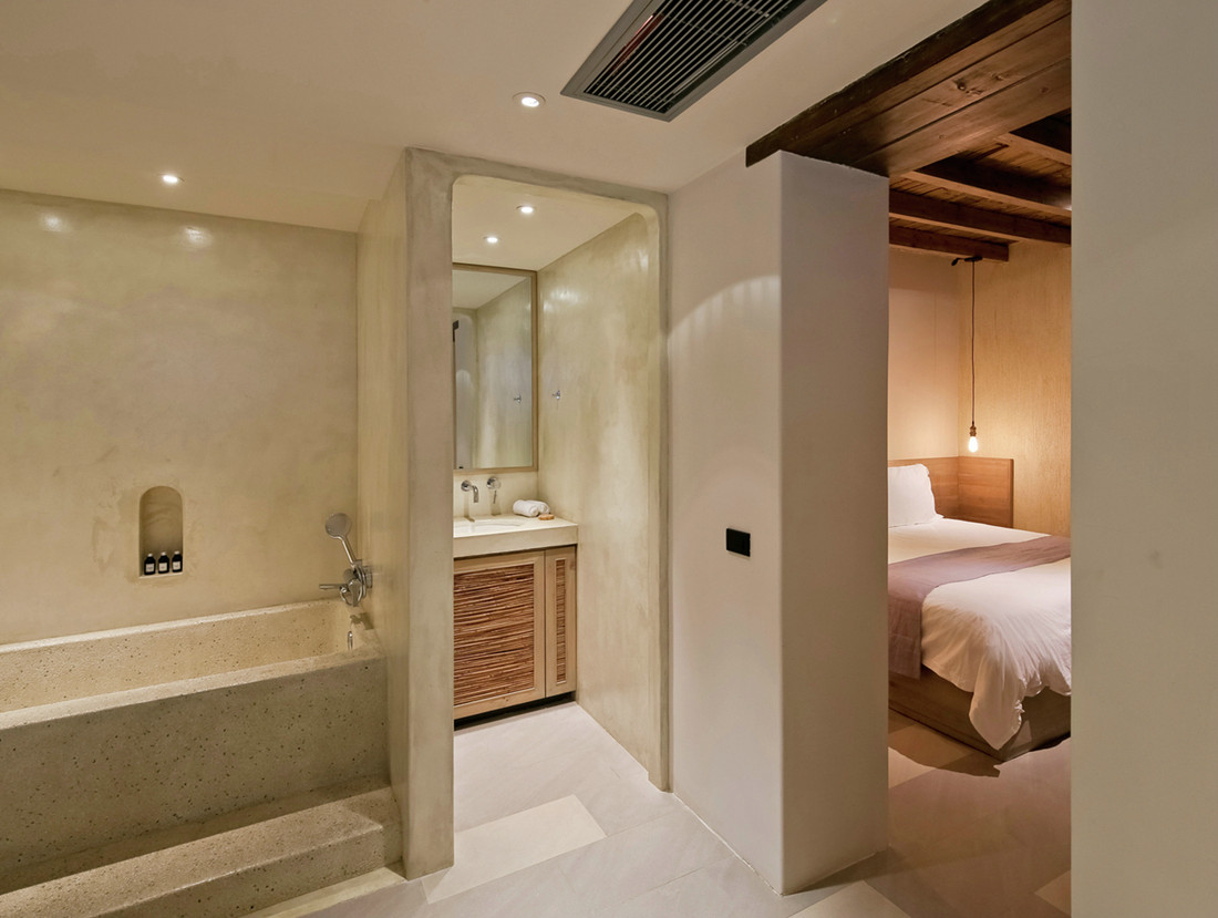 设计采取一种对当地文化和周围村民的尊重和谨慎姿态,规划与景观设计在最大程度上融入了村落结构,并在周边不另设围墙或其他防护设施。在不破坏原外观的前提下,老的夯土建筑被改造为符合当代生活品质的酒店房间。