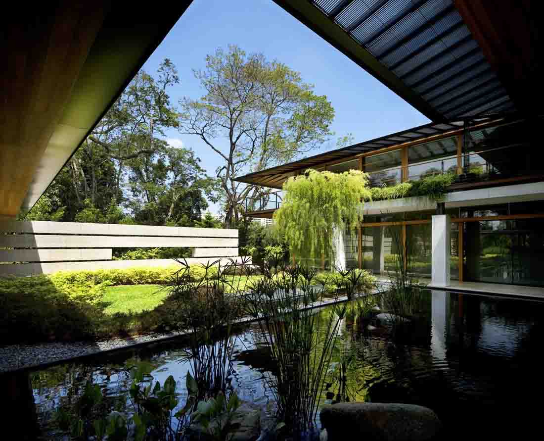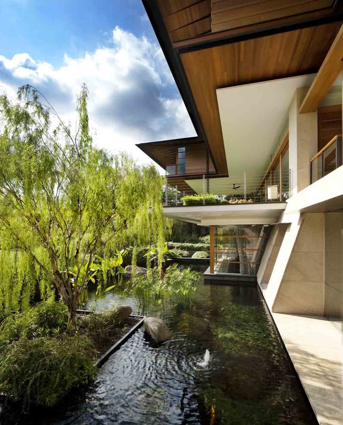 为了充分利用周围的绿色植物,创建了带景观的池塘和庭院作为焦点,既扩大了与该借来景观的视觉联系,又将房屋的各个侧翼分开以维护隐私。从各个方面来看,这座住宅的建造都旨在最大限度地发挥其细微差别,让人们尽享大自然的乐趣。