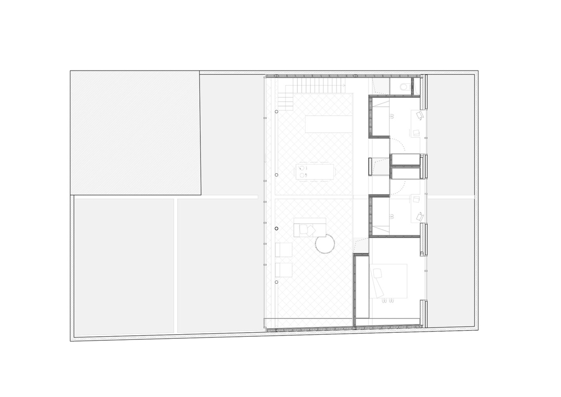 一间老旧的酿酒厂被改造成一座住宅。小屋的棚顶已经损坏,设计师照着已有的混凝土结构为基础而展开新的改造设计。