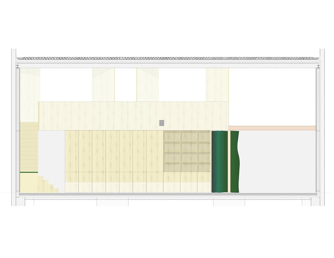 现有的构件需要和优质的空间产生微妙的交织,还需要牢固可靠的材料连接与原先那粗糙结构的对话。粗糙与精细之间的对比形成了张力,制定了整个空间。