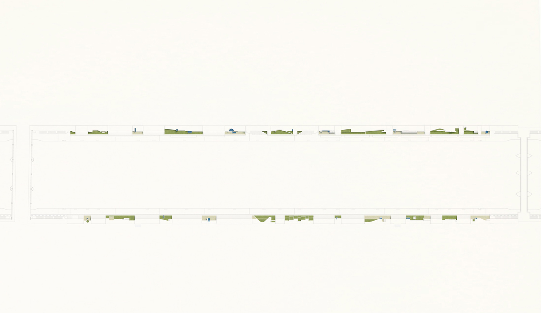 台伯河广场的规划也反映了罗马浴场活动的多样性,将活动的多种可能性汇聚在一起。在与街道面平齐的花园里,你可以找到一个属于自己的时刻,一个玩耍的机会,一个观赏风景的地方。你可以遛狗,可以思忖艺术品,可以享受片刻的宁静,可以在街市吃午饭,可以静静地交谈。