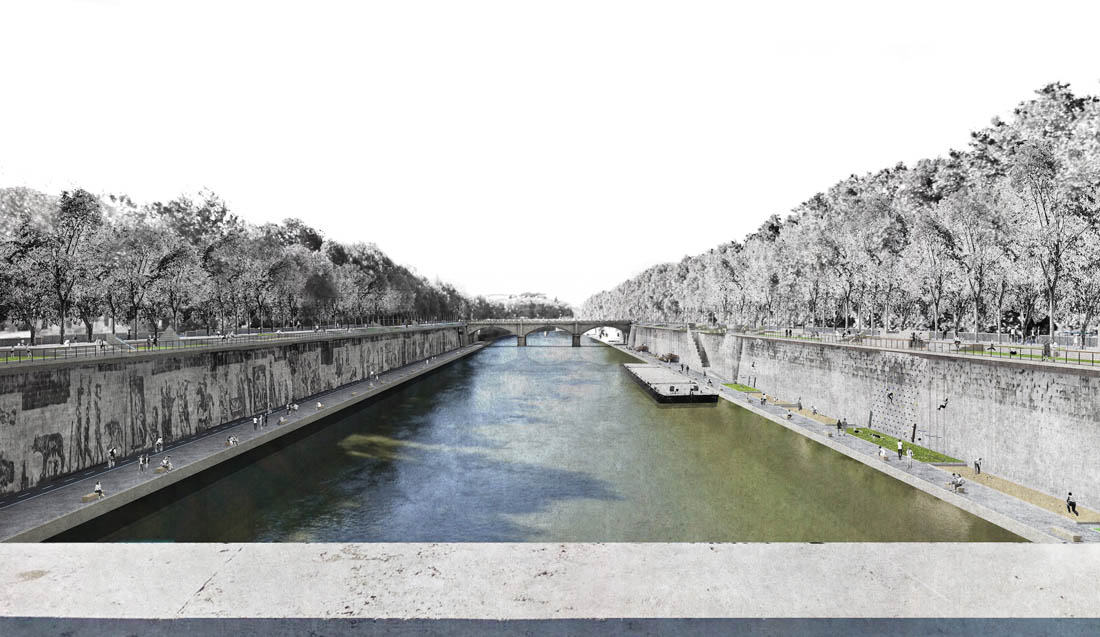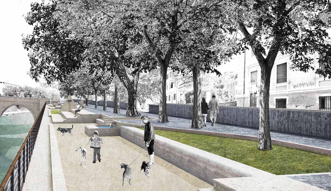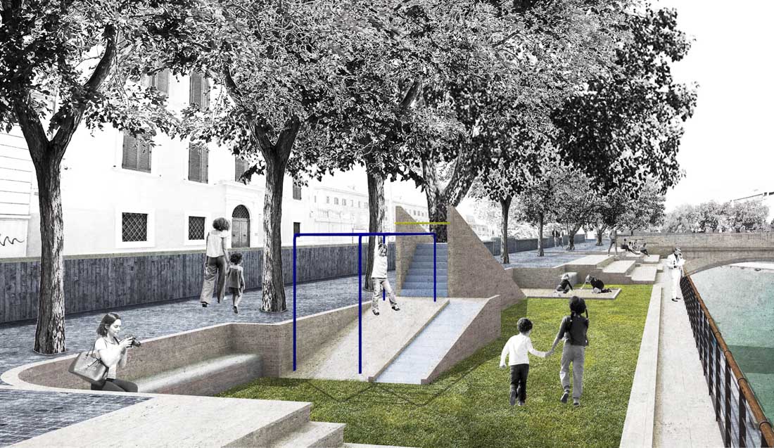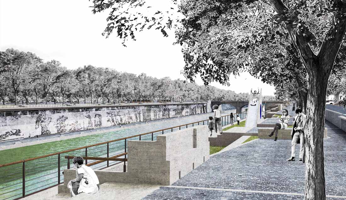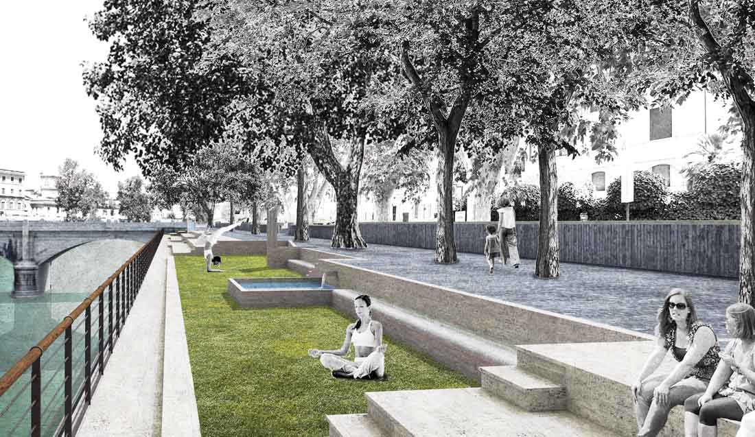 台伯河整体呈规则式矩形横亘在朱塞佩·马志尼桥和西斯托桥之间,其面积和比例与马克西穆斯竞技场相同。设计师规划打造新的台伯河广场,使其如竞技场一样,成为罗马公共生活的一个重要中心。