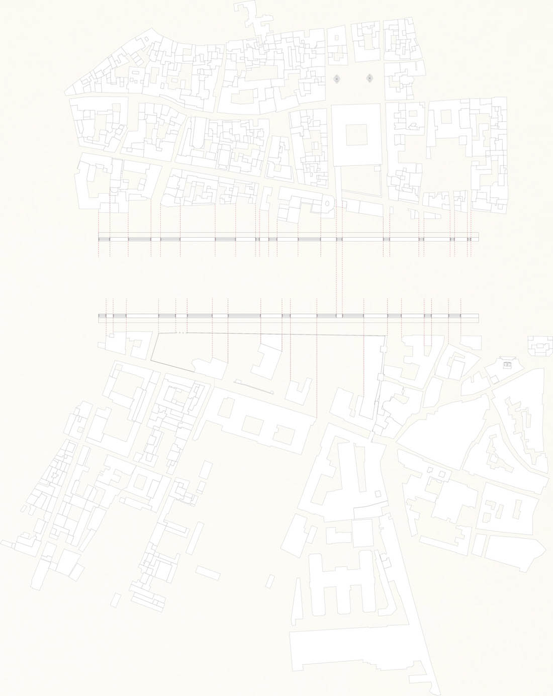 挑台上的小空间沿袭了河两岸的城市肌理,唯一一条横跨台伯河的交通线是米开朗基罗还未完工的法尔内塞桥。相互交错的阶梯轮廓起到了构成和装饰作用,剧场落座区与花园在竖向上也富有变化。