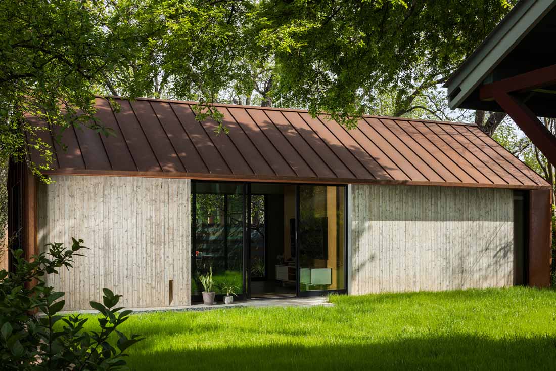 这种多功能的娱乐棚以周围历史悠久的街区的传统形式为特色。指定的后院,缓冲繁忙的小巷和相邻的多户家庭,在后方形成第二个私人院子,而几乎不会遮盖现有房屋。