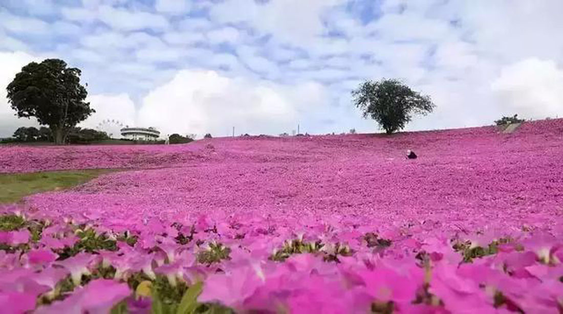 牧场坐落在山上,利用广阔的空间栽植了大量的花卉,比如油菜花、粉色矮牵牛、绣球花等等,这些花的花期交错,使得不用季节的观花也成为牧场的一个亮点。花卉都采用单一品种大面积栽种的方式,利用山地的地形,增大面积感。