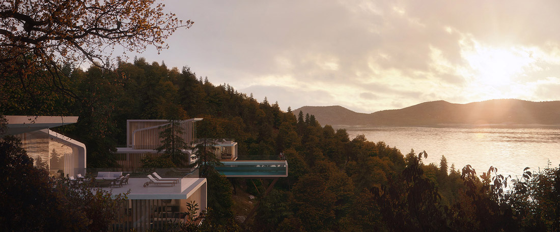47万平方米的场地被分为三个街区,并各自拥有一个独特的花园。每个街区中的建筑均与自然环境相呼应,以岛屿固有的绿色品质为基础,为既有的自然保护区赋予了更加丰富的特征,同时也为繁茂的森林留出了足够的生长空间。