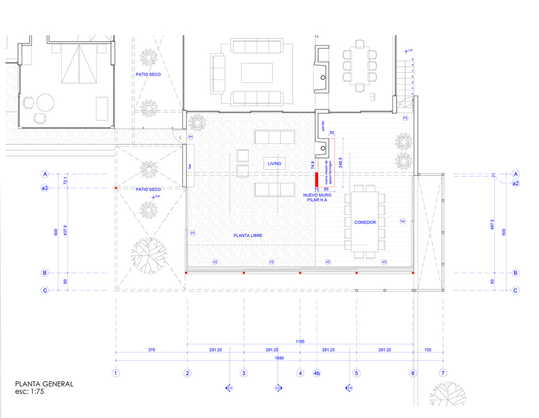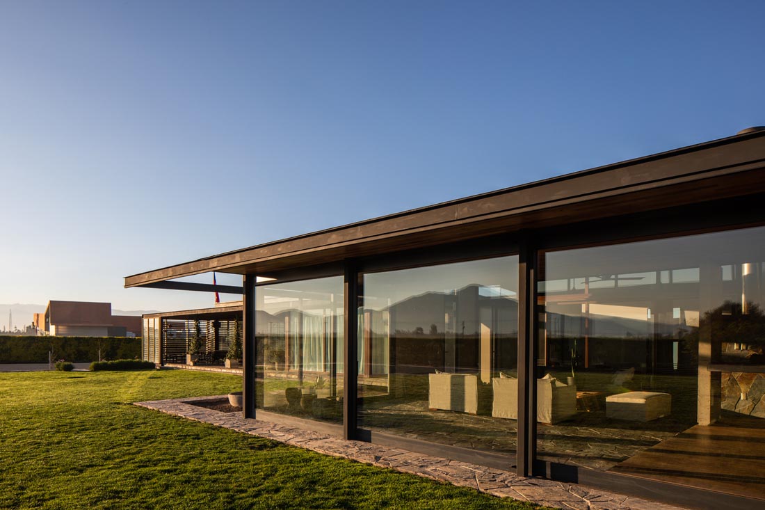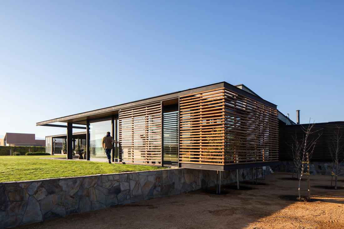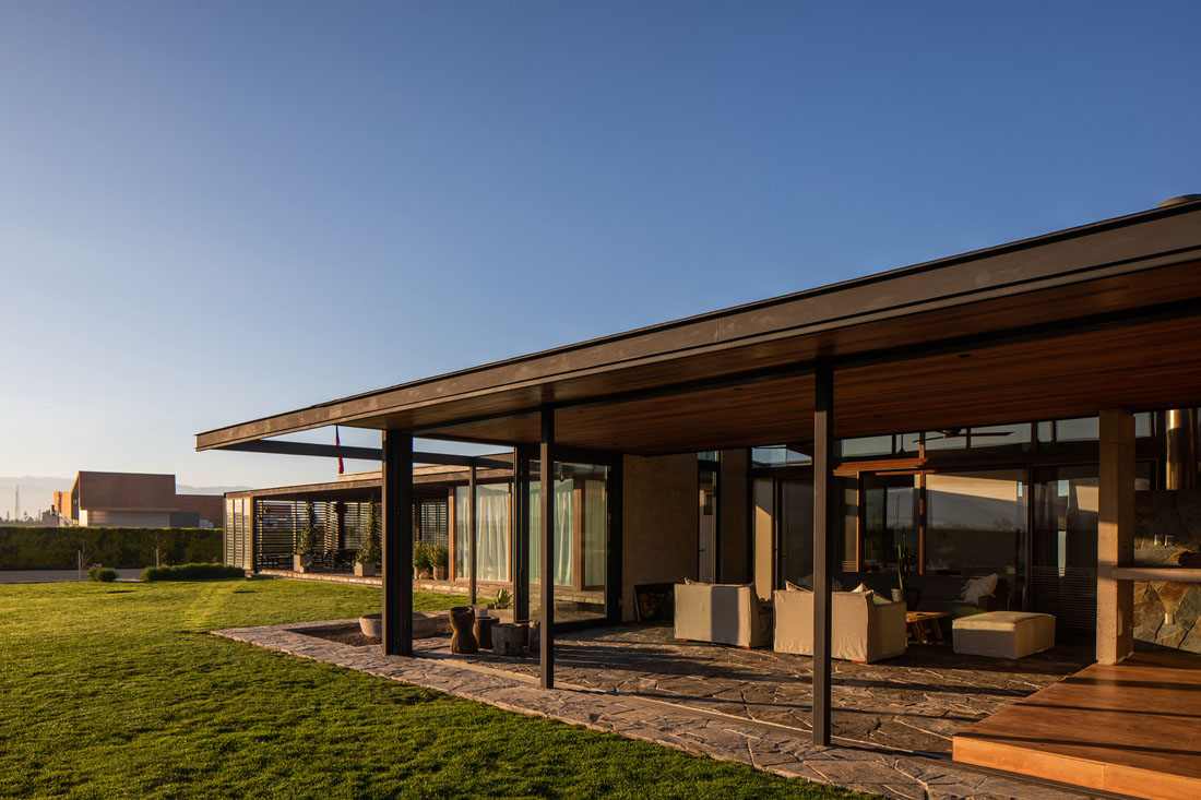 木格子是房子的另一个重要组成部分。这些被用来制作了一个漂浮的主体,并构想了一个向餐厅开放的绿色区域。幕墙可滑动整个项目,控制日光辐射。同时,滑动窗户系统可以使整个项目进入花园,因此可以在冬季聚会中使用。