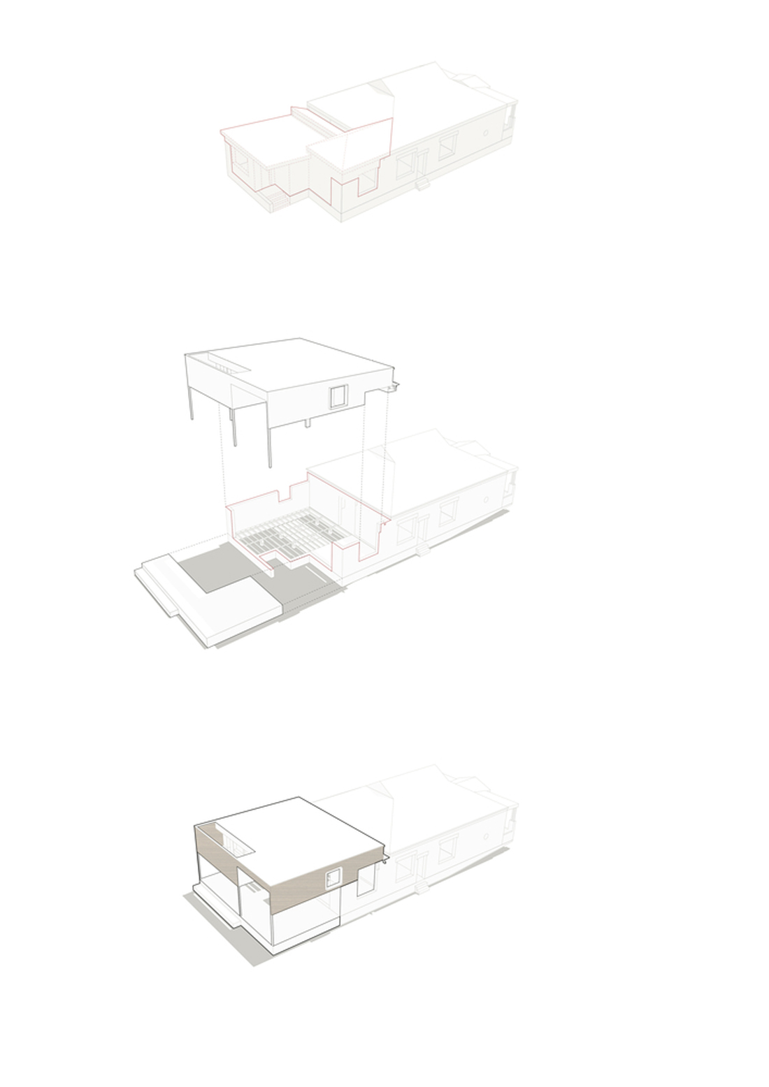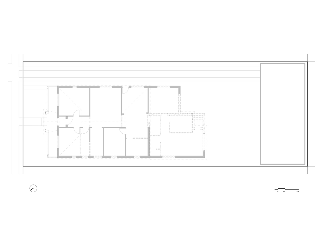 改造项目没有另外增加占地面积。设计师对于住宅后部的拆除改造,考虑了历史建筑保护和可持续性相关的问题,在原有的挡土墙上方添加了轻盈的木质结构,也重新设计了窗户。