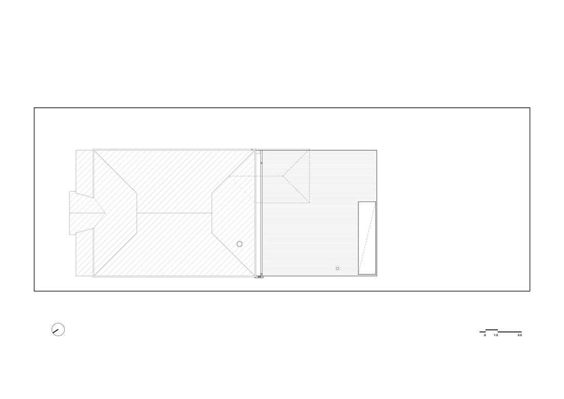 这个南面新的屋顶改造,增加了天花板的高度,并仔细平衡了不同光照条件带来的影响。室外平台的屋顶有露天开口,可以将阳光反射到室内,也能在夏日午后为建筑遮阳。