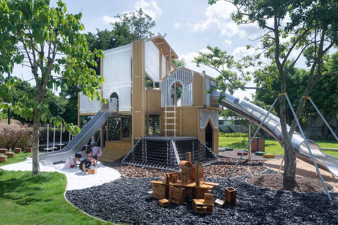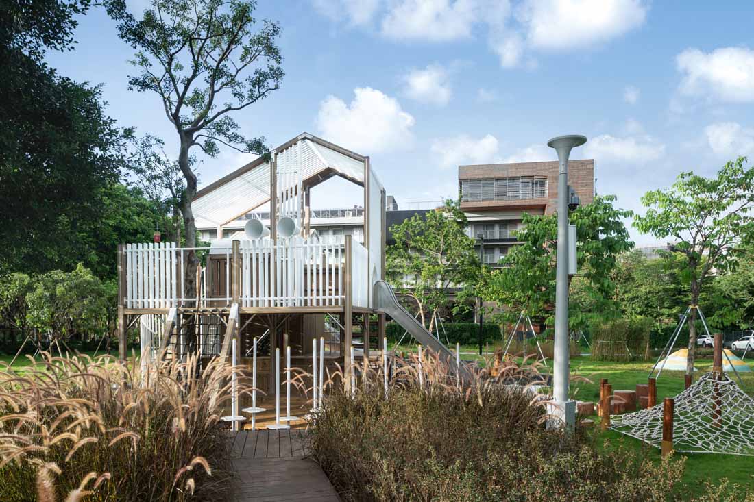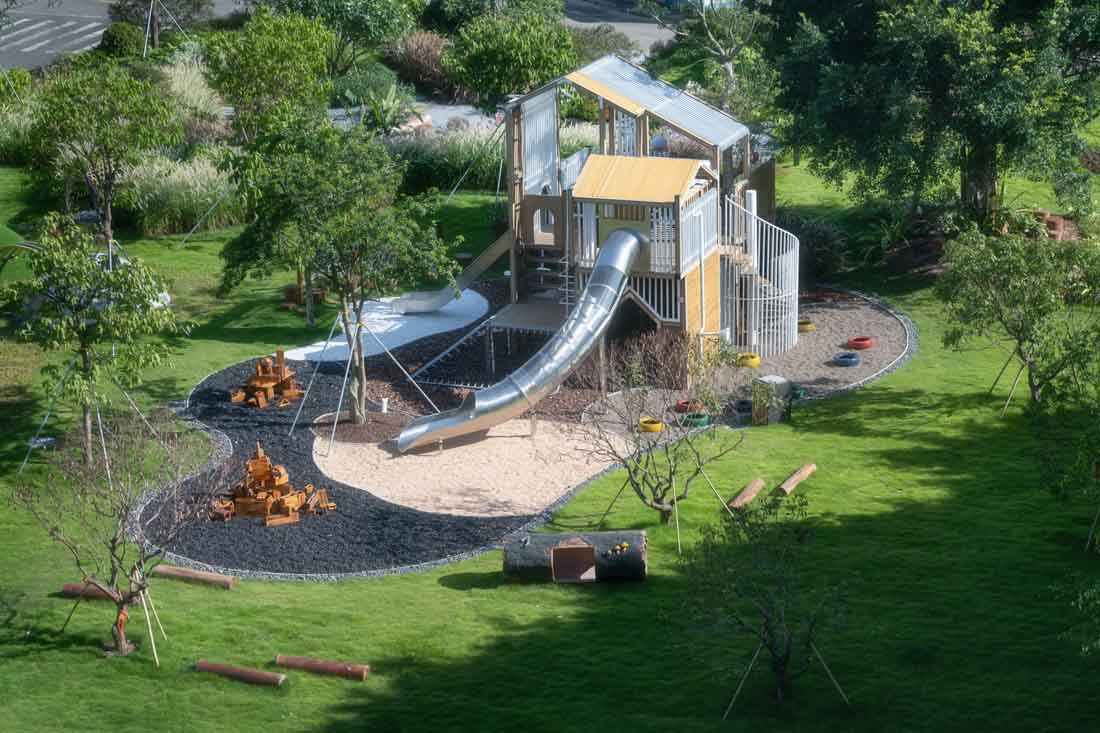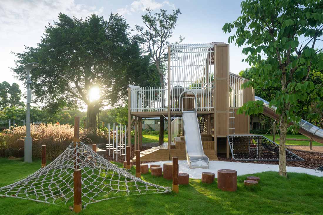 如今的社区住宅空间,有太多的儿童乐园长在水泥世界中,自然元素逐渐淡出孩子们的活动范围。如何让各种自然元素重现在社区,如何让儿童在城市环境中感知自然,如何让大孩子和小孩子都能感受到关怀等问题成了设计师设计考量的重中之重。
