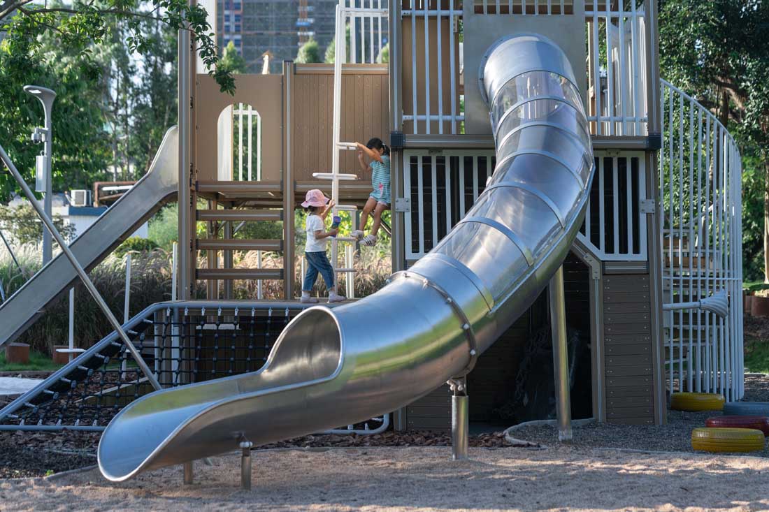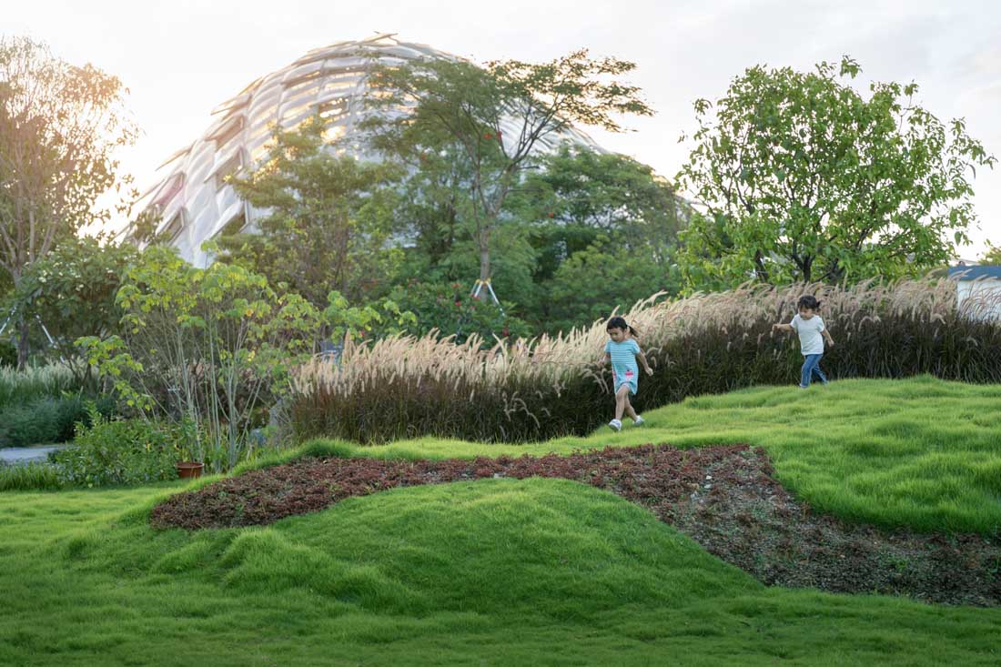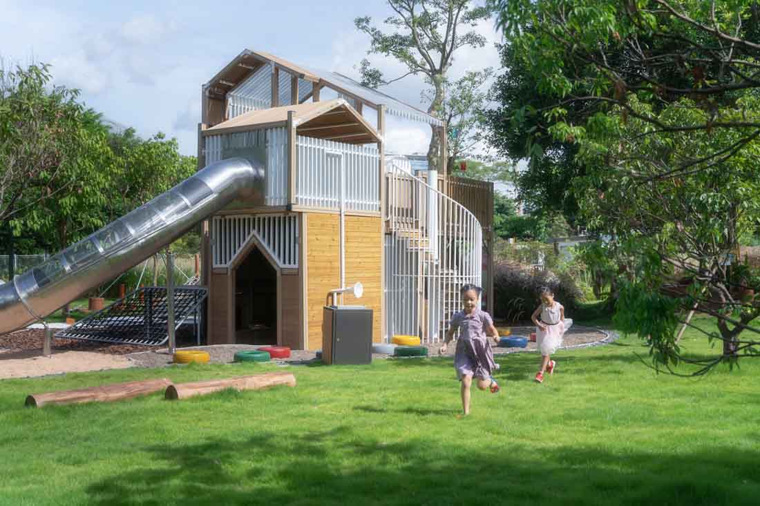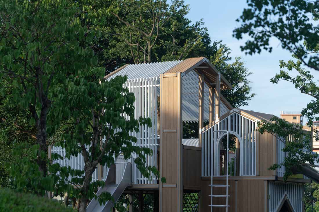 如今的社区住宅空间,有太多的儿童乐园长在水泥世界中,自然元素逐渐淡出孩子们的活动范围。如何让各种自然元素重现在社区,如何让儿童在城市环境中感知自然,如何让大孩子和小孩子都能感受到关怀等问题成了设计师设计考量的重中之重。