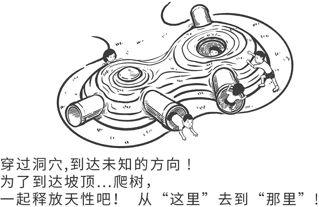 为了解决社区景观设计中普遍存在的问题,并在现有儿童游戏场地中有所突破,设计师尝试实验一个以自然为主题的儿童游戏场地——儿童自然模块。“大自然”是儿童探索和学习最好的场地,在户外自然环境里,通过接触不同的自然元素,能满足儿童探索创造的心理需求。