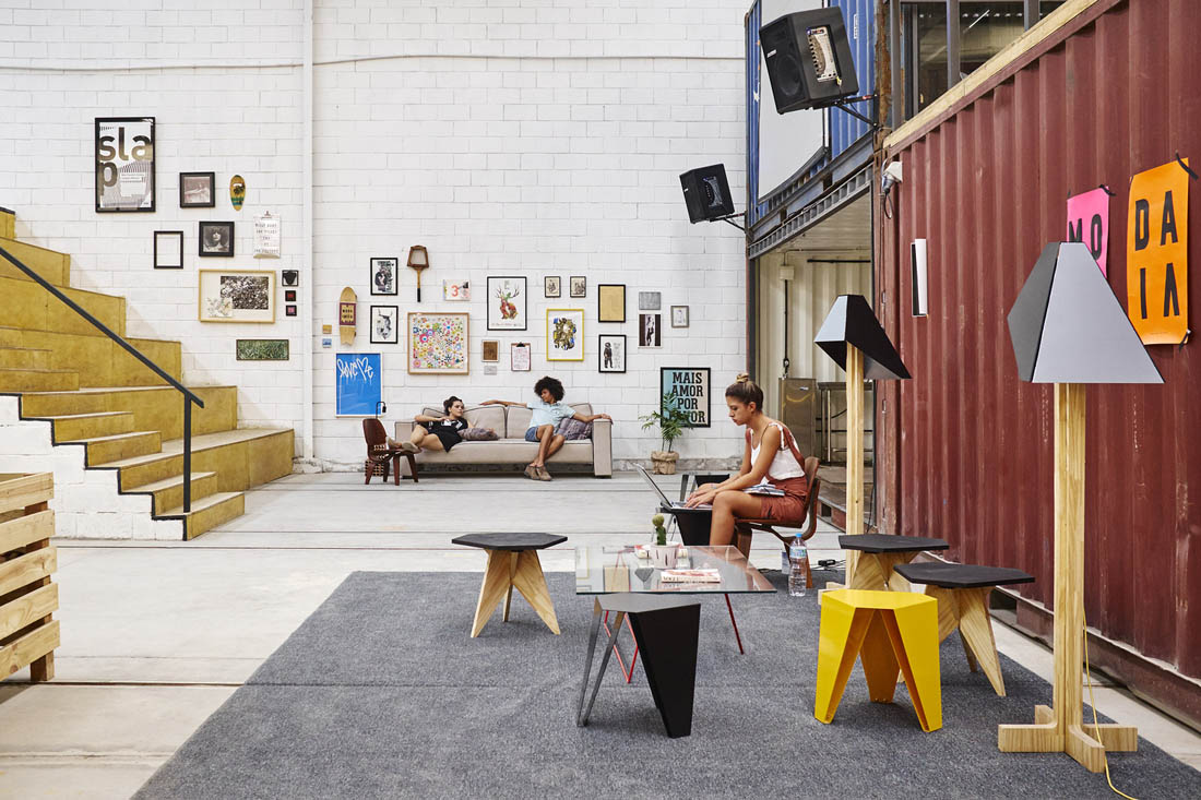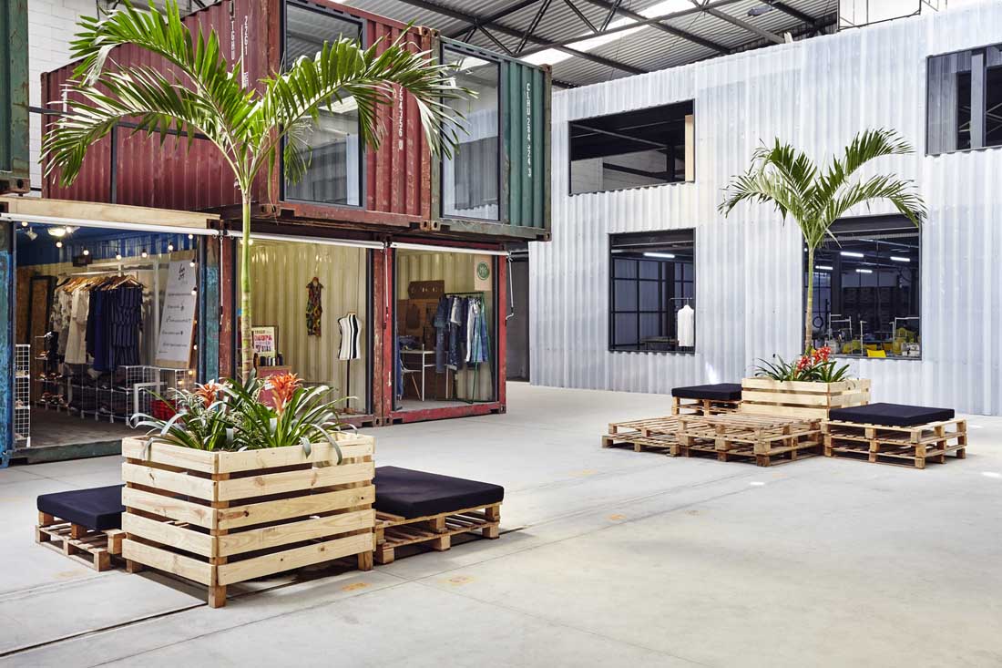 一些货盘已经散布在整个空间中,可以用作座位,还设置了小的植物床,再加上沙发,长凳和桌子,营造出一种将房屋氛围与公共空间融为一体的氛围。