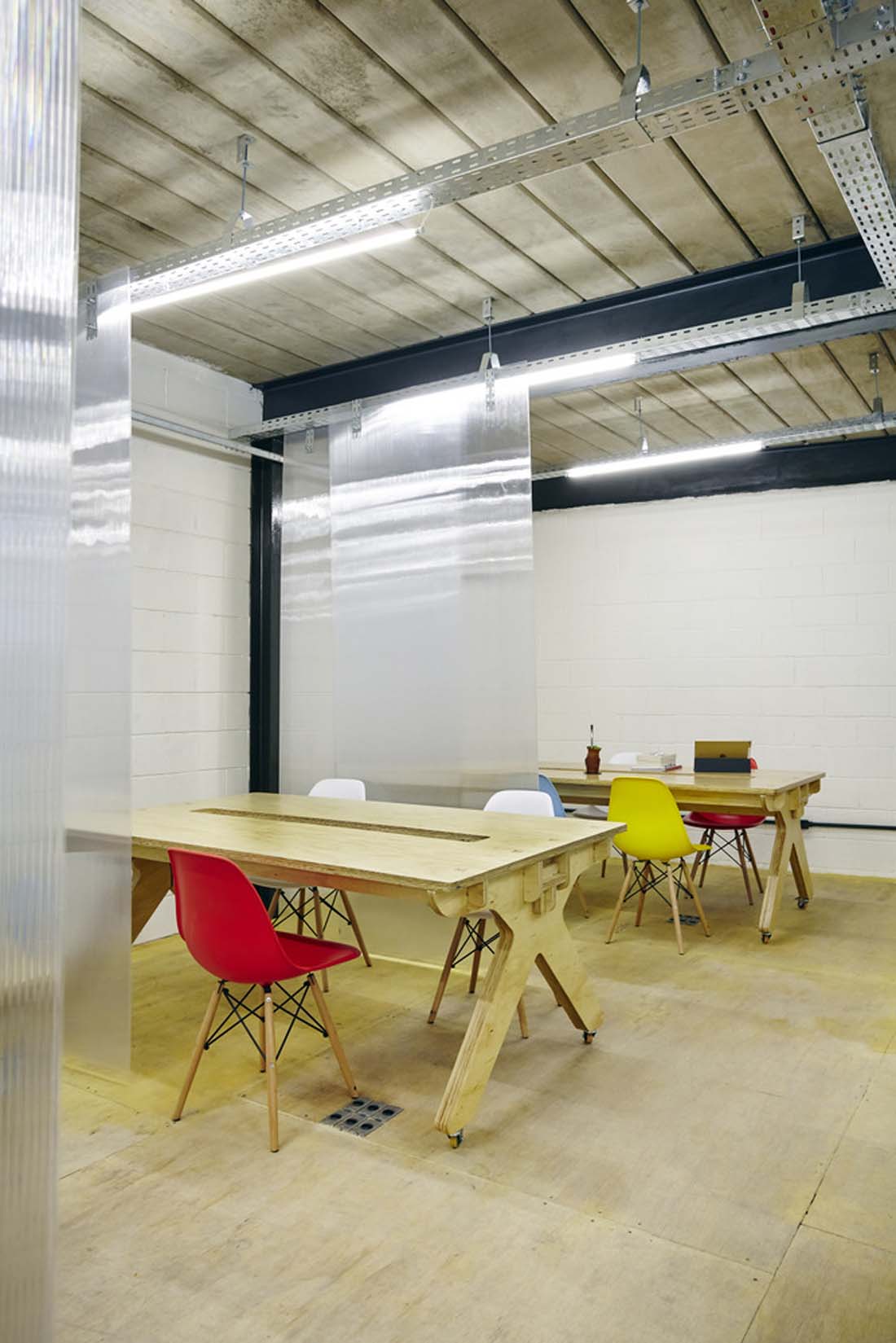 设计师利用现有结构,仓库空间是一个开放式空间并且包含半透明的瓷砖玻璃,这些瓷砖允许自然光进入所有基本组件。