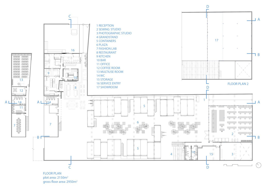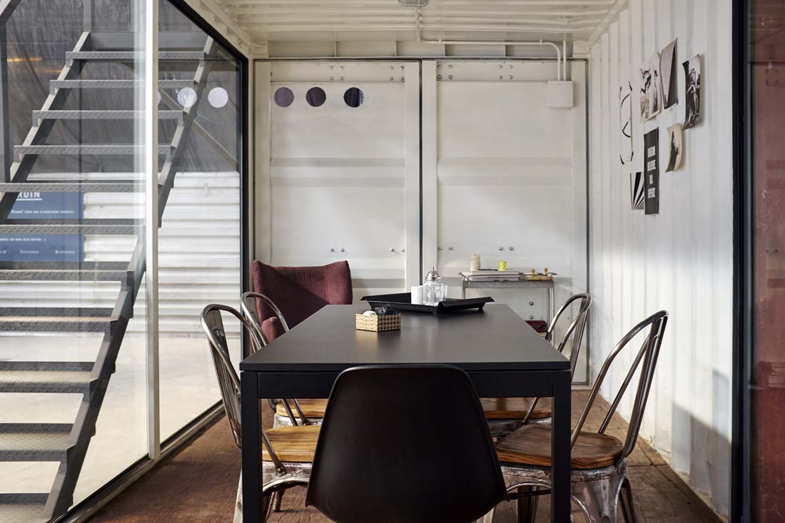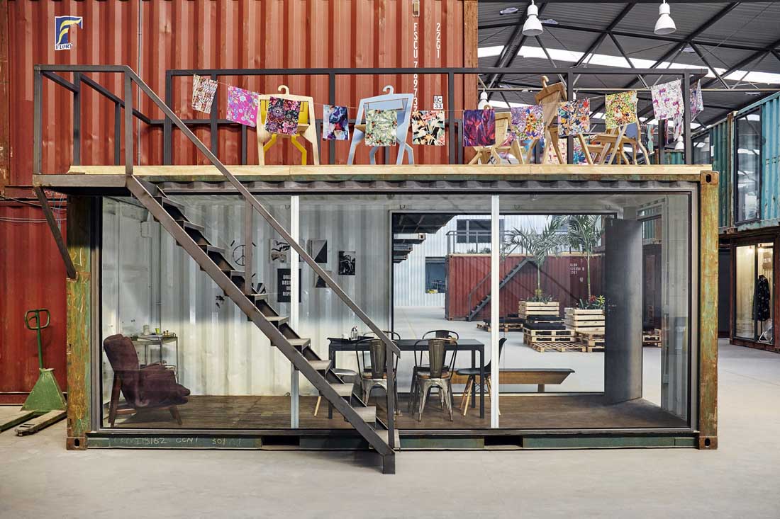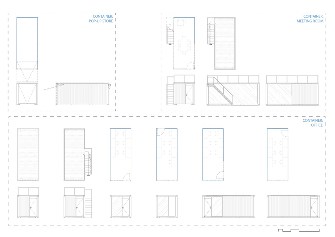 设计师的出发点是使用集装箱作为主要的建设性元素并且可以进行快速、干净的建设。设计师在四十二个重新利用的容器之间创建了空的空间,这些空间沿着内墙分布在两个层次上。