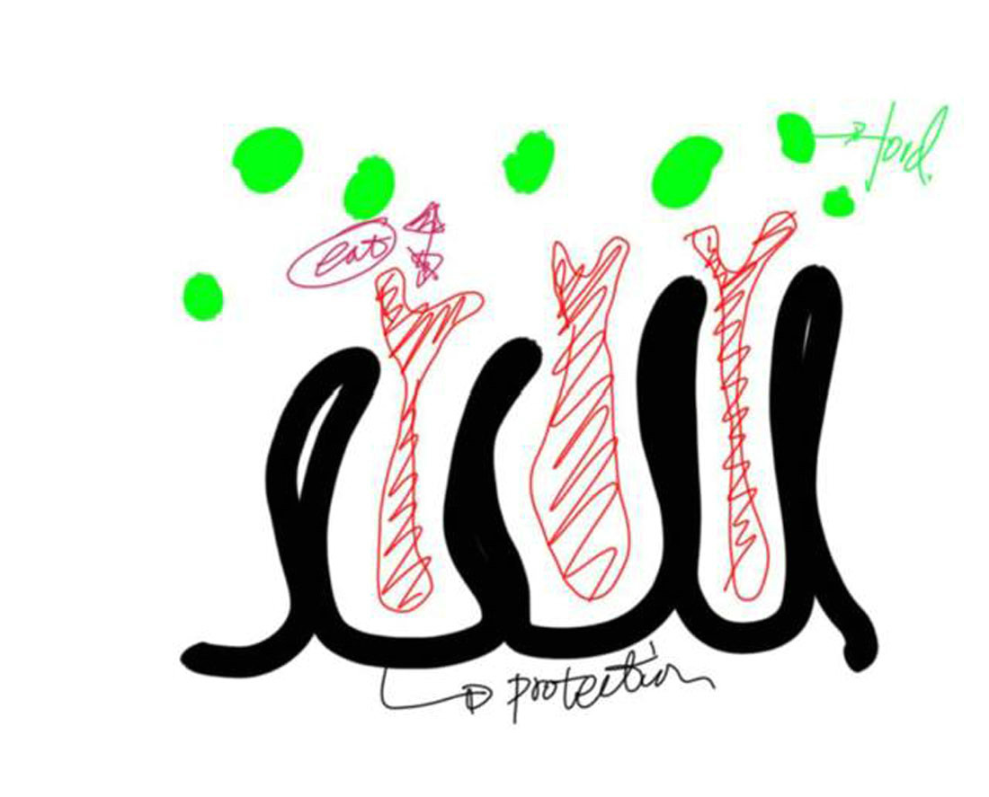 这是一个螺,这是一块石头,表面上看是石头,实际是生物体造出来的东西,是一个人体的结构,它也是我不要死,要活的结构,首先要产生保护的硬石。我发现我们生活中的方方面面,包括我们人体,我们用皮肤去保护,我们有思维抵抗外力,我们需要食物,我们把东西往里面塞,也许才能活下来,活下来才能继续繁殖。这个结构说白了,就是一个字,“力”,一个空间力的产生就是保护,然后通过力去攫取食物。事实上说到设计,不要去设计东西,去观察力的走向,所有的东西都是流动的东西,自然而然形成一种设计的东西。
