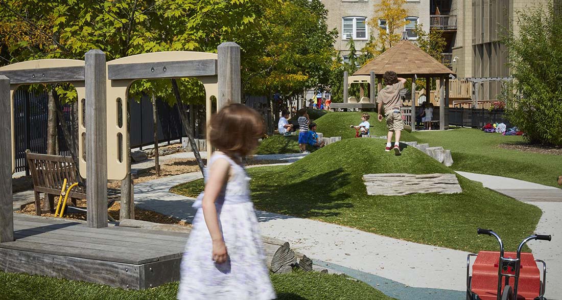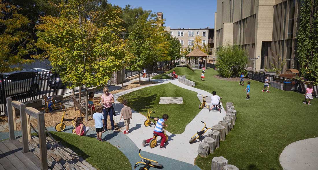 一系列的室外教室,包括一个雨水花园、当地的树林和一个土丘系统,被用来传达关于水的想法,以在这个城市环境中产生对自然世界的更深的理解。