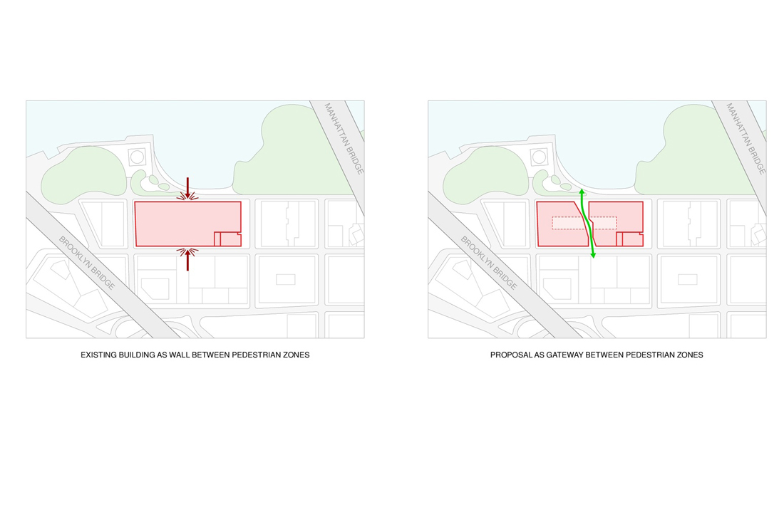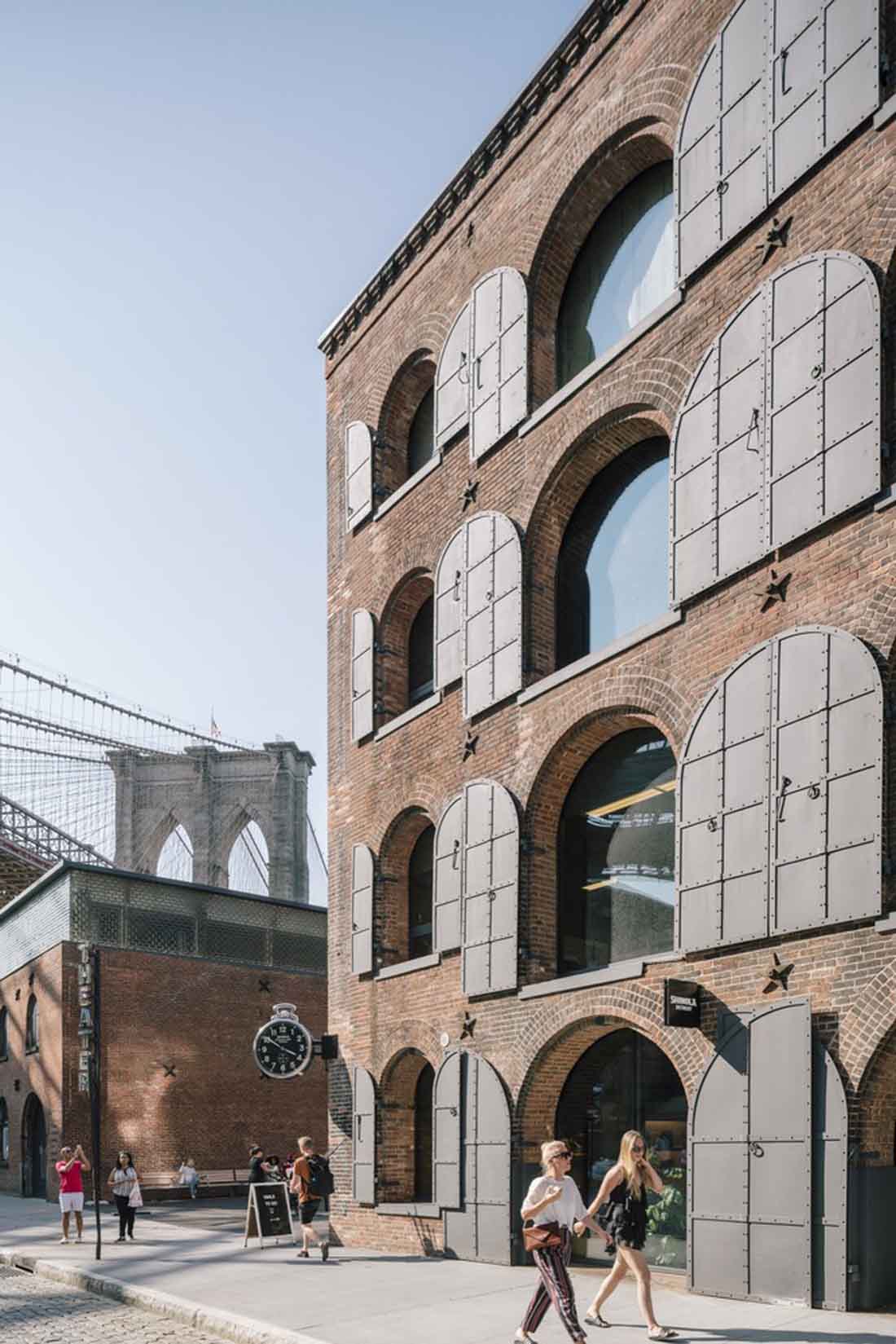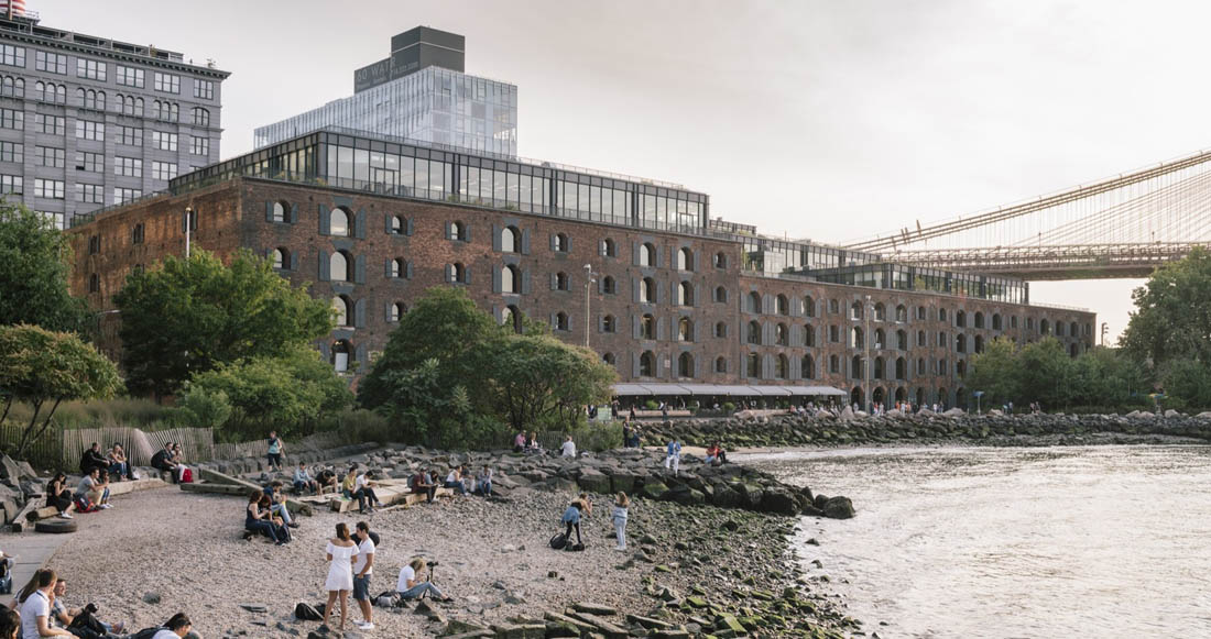 45万平方英尺(约4.1万平方米)的综合体改造项目为布鲁克林蓬勃发展的技术三角提供了急需的办公空间,还有临近的零售、用餐、公共空间、展览空间。“适应性再利用”设计保留了该建筑在海滨的标志性地位,同时改善了DUMBO的城市肌理和布鲁克林大桥公园之间的循环。