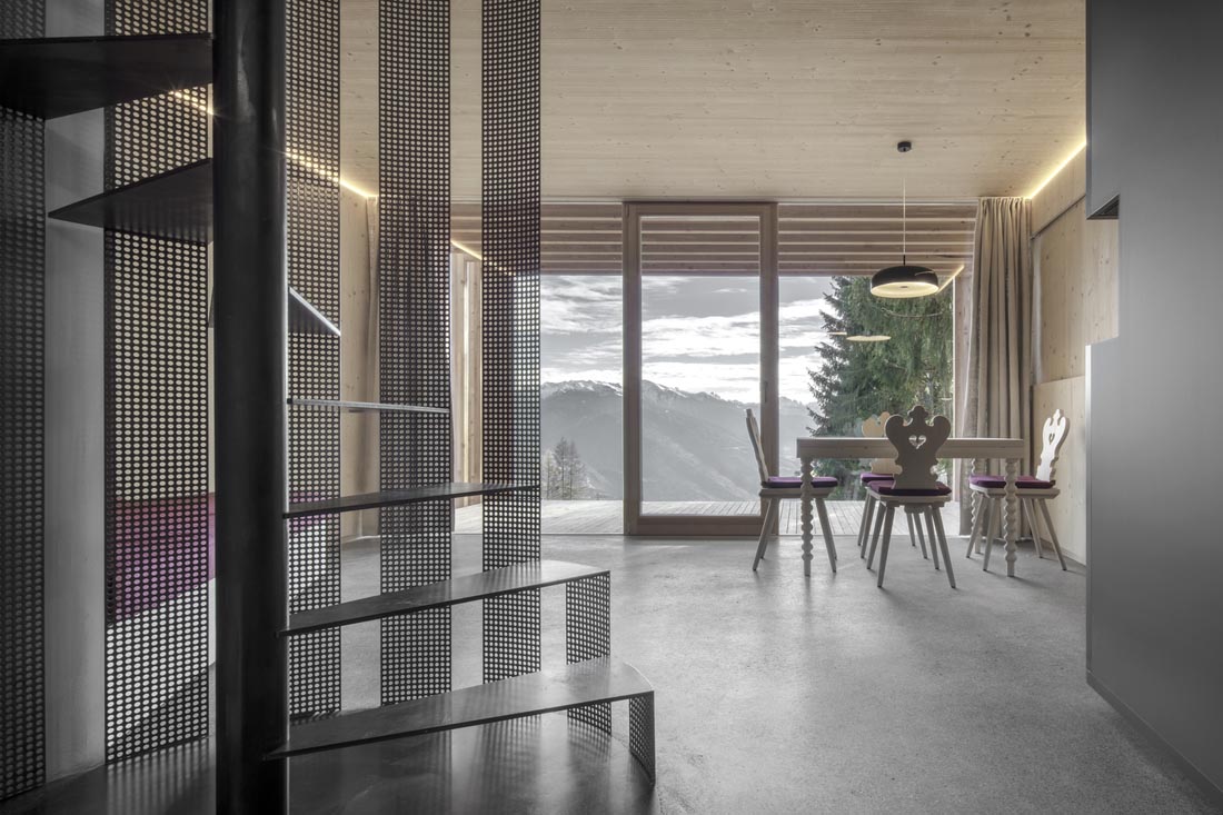 该地点位于南蒂罗尔州,在一个田园诗般的云杉林地中,还享有白云岩的美景。该旅馆可通过一条简单的小径进入,该小径作为一条远足小径通向当地称为“Gitschberg”山的高山。冬季滑雪场距离地面不远,可以步行到达。用户与周围的自然环境紧密相连,并享有无数的优势。
