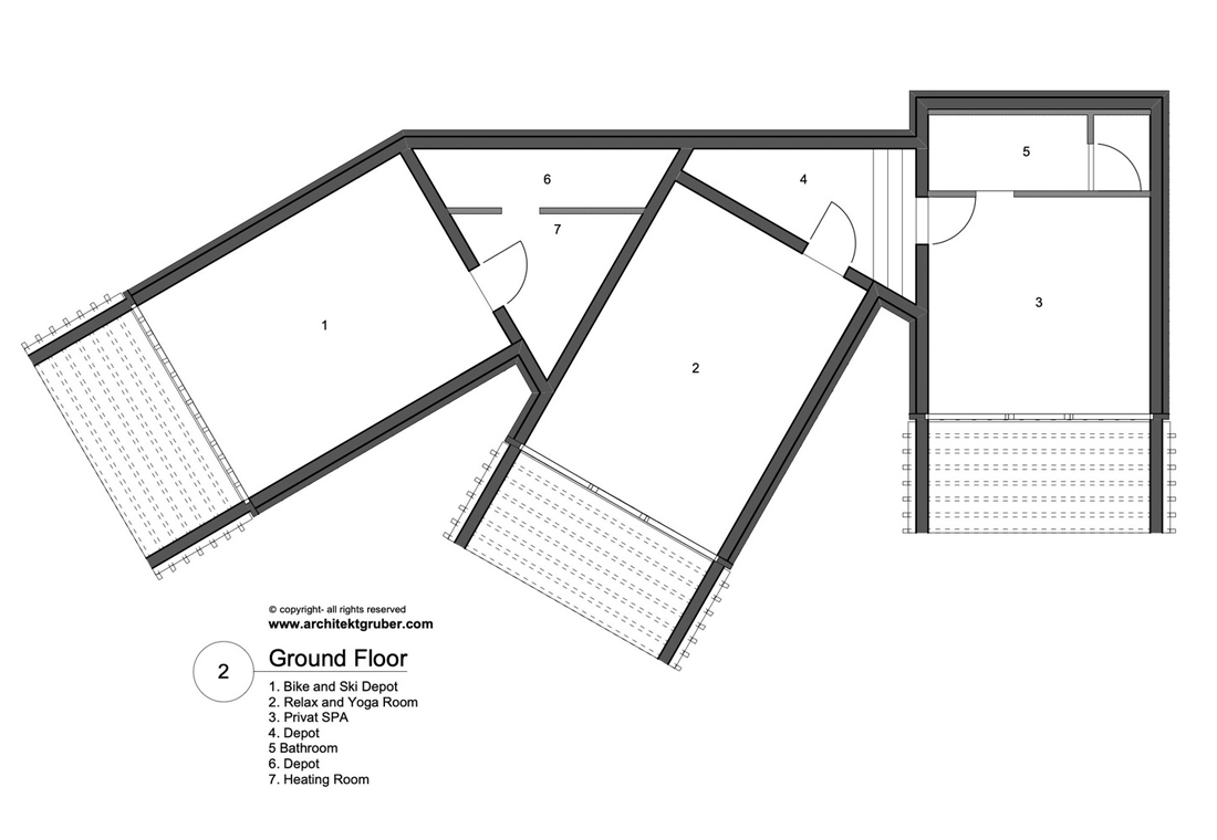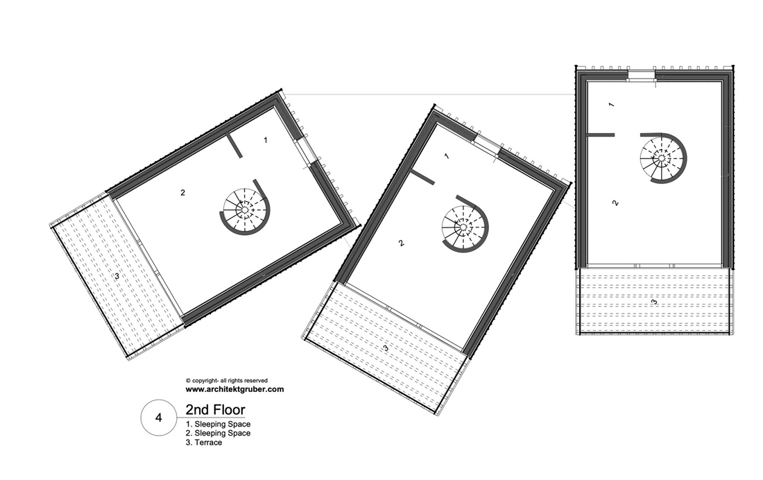 设计师为生态旅游概念设计了一个包含三个单元的建筑结构。结构可根据客人的需求量身定制,并让客人在旅馆中感觉自然的美好。扇形创造了私密性,并为客人提供了周围自然的不同景观,其独特的视觉特性同样被赋予了建筑内部。超大的玻璃开孔框框了各个景观,使每个住宅单元都独一无二。