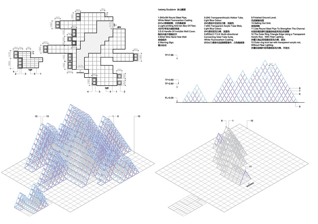 设计师不希望它仅仅在入口静态地矗立,而是通过动态的灯光设计和互动参与性的注入,从而让这座冰山”活”起来。