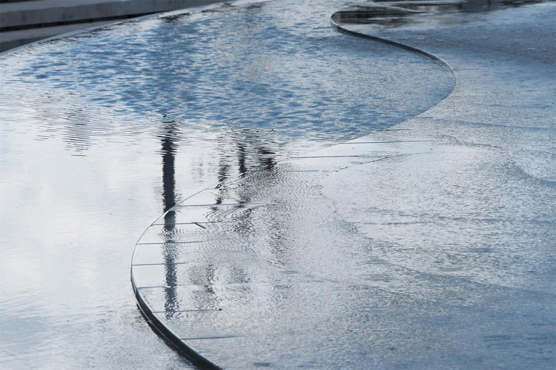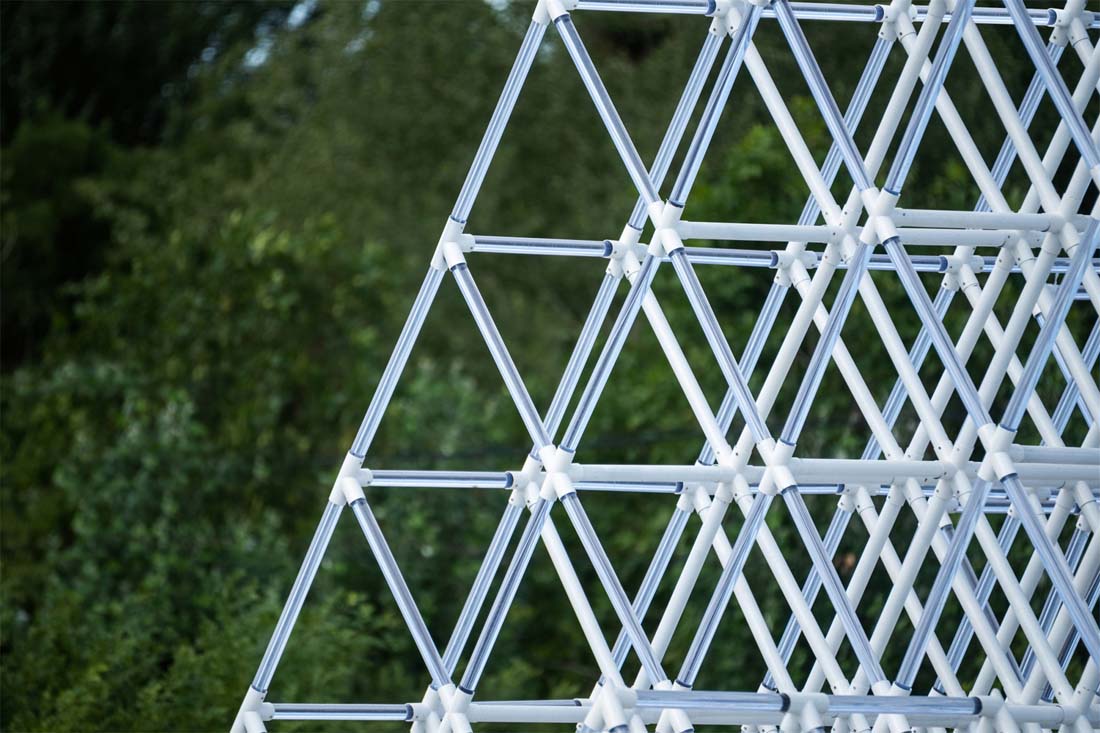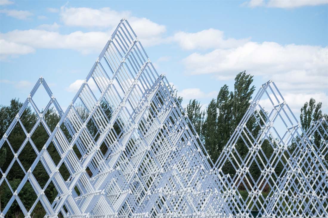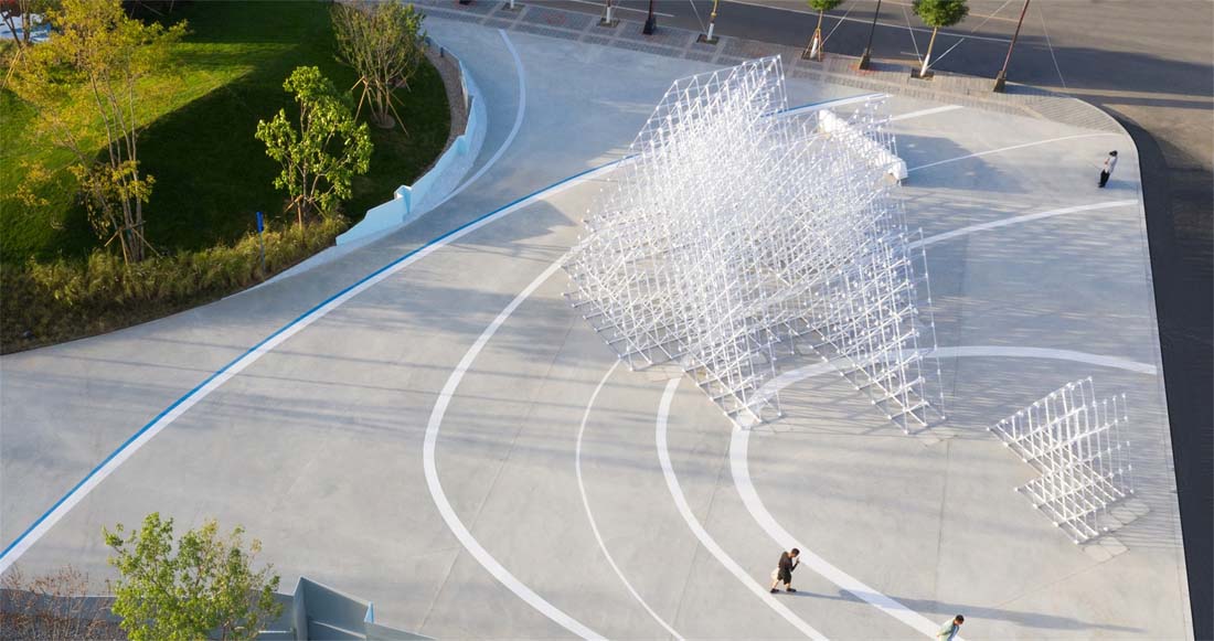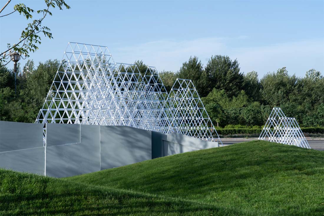 这段模拟冰山天际线、最高处10M、由近4800M蓝色系尼龙绳打造而成的通透“边界”,不仅承载着对外快速主干路的城市形象界面展示,同时也承担着公园内部球类运动的安全围挡。