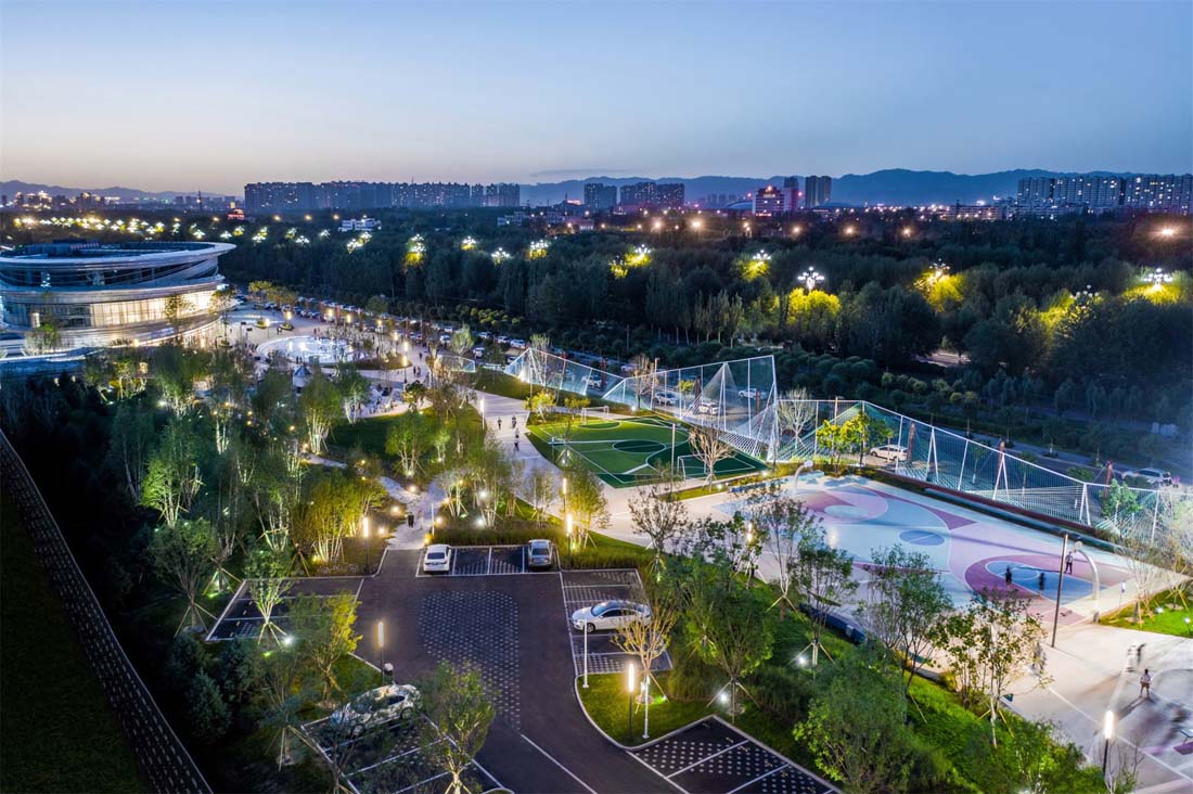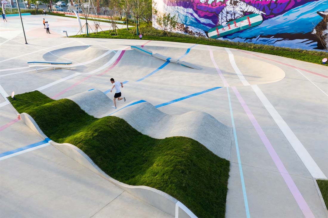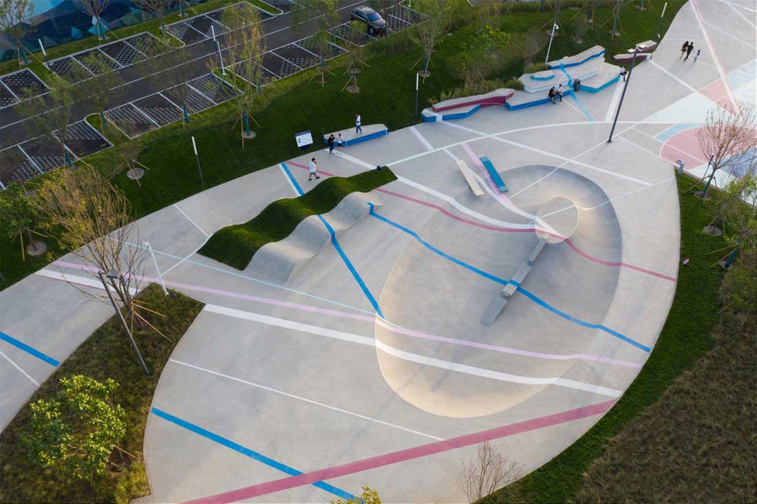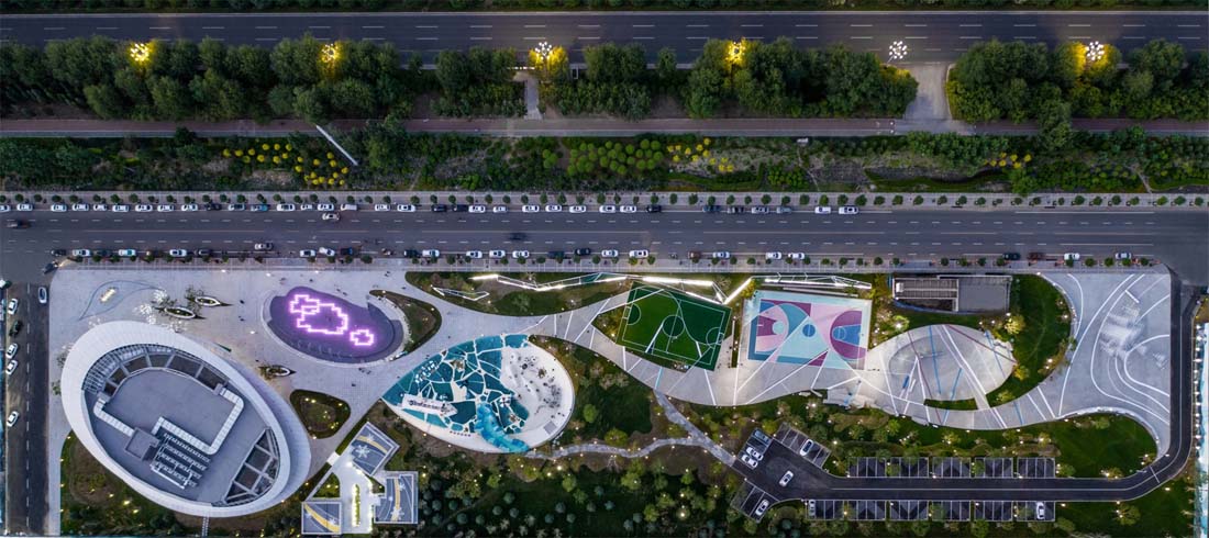 这个充满活力的运动广场位于包头市,占地约20,000m²,紧邻串联东西新老城区的城市主轴建设路,与包头市政府仅一街之隔,计划未来两至三年内将在基地以南打造呼包鄂最大的室内冰雪馆。冰雪和户外运动不出意外地成为这个带状公园的主基调。
