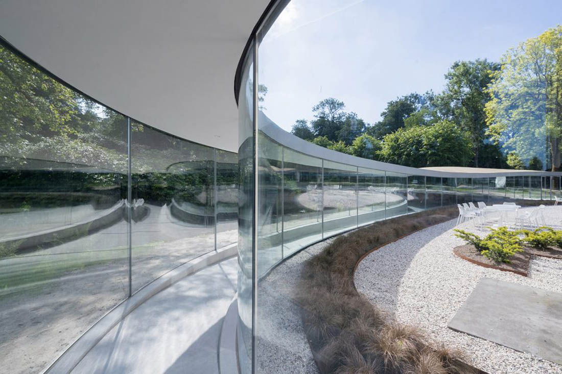 Vijversburg公园位于荷兰北部,是一座历史可以追溯至十八世纪的产业。自1892年以来,公园一直向公众开放,这里终年举办各种活动,如国际艺术展览、音乐节、教会活动和郊游等。为了容纳不断增长的游客,业主希望在历史庄园附近新建一个展馆作为会议及展览空间。鉴于公园已被列入国家文化遗产,改建计划将最大程度的保护历史建筑及公园的原有面貌。