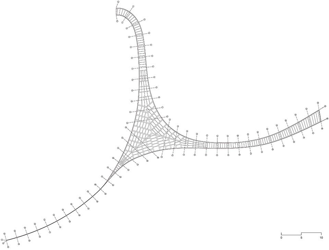 为了创造畅通无阻的景观视野,结构元素被减少至极致。柱和墙等传统结构元素都消失了,仅靠超白玻璃墙举起了屋顶。三角形的平面布局可以避免使用隔墙,创造了宽达十五米跨度的无柱空间。