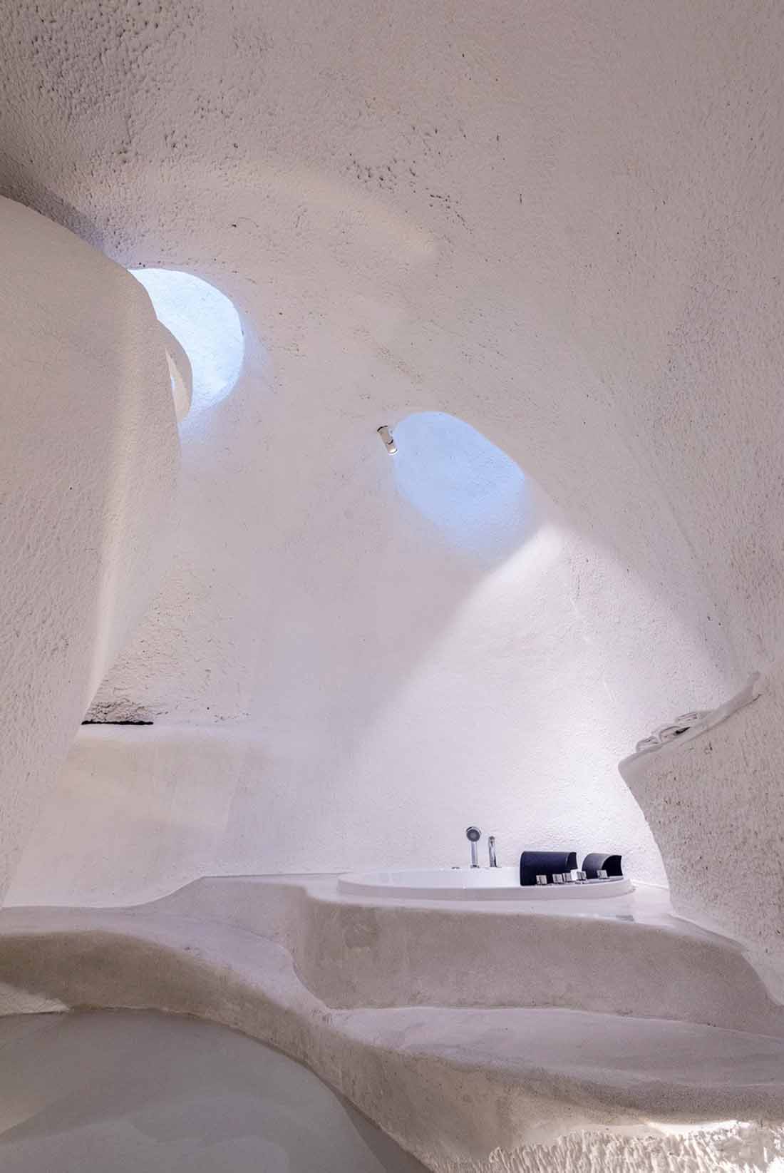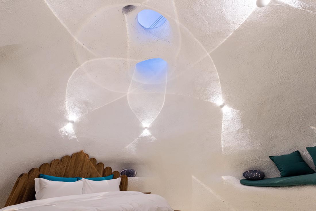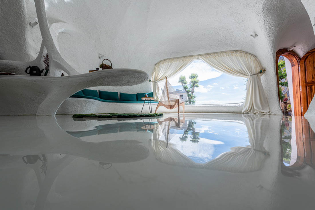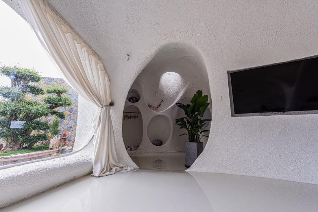 当曲面构造的空间体量被赋予朴实的功能,超现实主义的空间便能柔和的刺激人的感官。肌理、光线、空间相互交织,能给人柔和的触动。