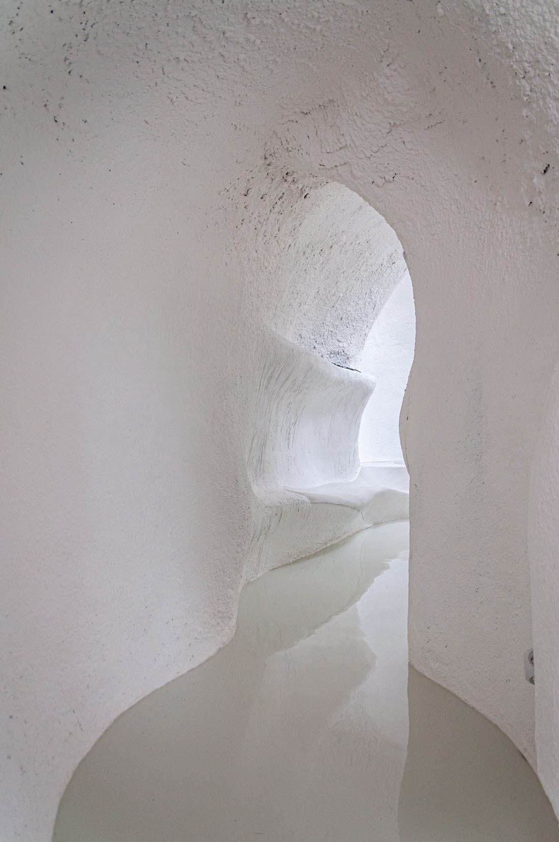 曲面能够模糊明暗的交界,柔和地引导光线。同时,为曲线墙面覆上褶皱和肌理,自然的引导人在空间中穿梭。