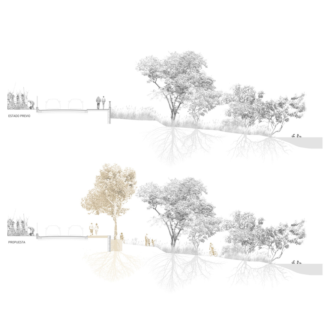 就像任何再生植物一样,该项目可以通过三方面解释:过去的小径定义了一个开放的空间系统,该空间易于访问且完美地融入了环境。现在的小径变成交通十分繁忙的道路,严重的可达性问题撕裂了空间。