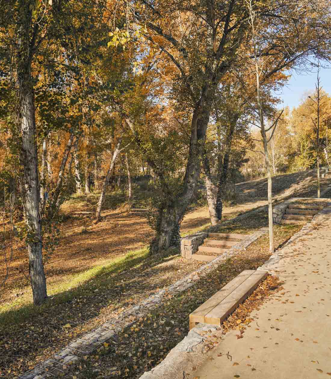 设计师通过布置楼梯,坡道和阶梯来解决人造结构和自然两层之间的联系,并重新安排河岸的自然区域;修复河岸长廊及其边缘,使其成为市民可使用的空间;通过在不断变化的环境中进行低强度干预,将基础设施与自然重新融合,这样,区域很快就会形成一个体系,并拥有自己的规律,可以自动摆脱那些非根本性问题。