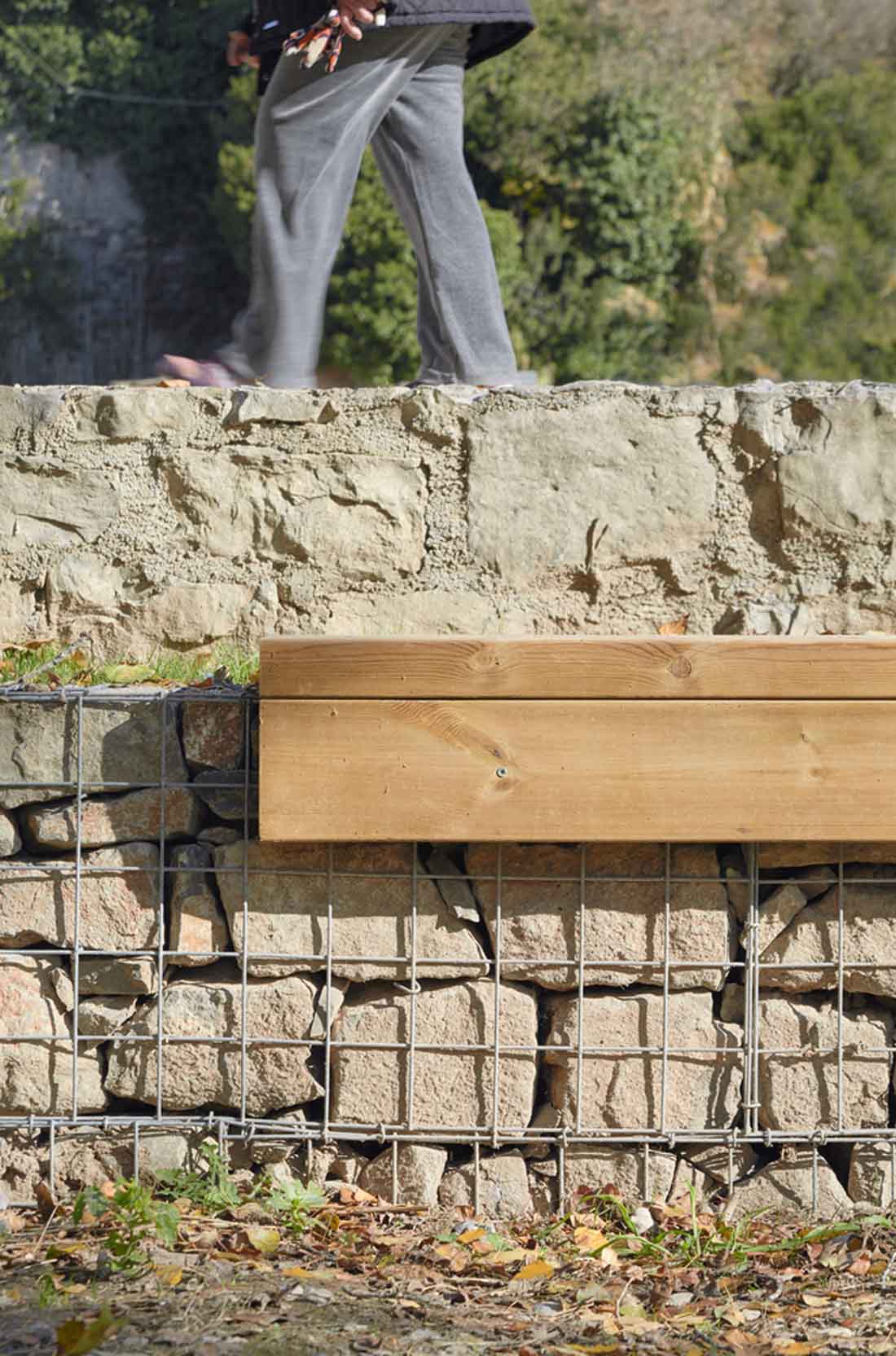 该项目是一个解构过程:通过拆除混凝土栏杆向景观打开一扇门,该栏杆在基础设施和景观之间划定了一个过分明确的边界。一个非实体化过程:通过使用本地和再生资源使环境和建筑重新结合。一个停止隐藏的过程:通过清洁路径边缘的开放空间使人们可以使用他们。